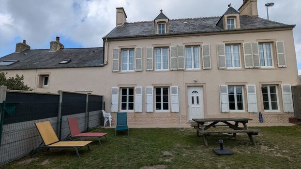 Einrichtung: Wohnfläche ca. 120 qm. Großes und schönes Anwesen aus dem Ende des 19. Jahrhunderts. Seine hellen und großzügig geschnittenen Wohnräume bieten eine gemütliche Atmosphäre zum Erholen. Die Ausrichtung des Gartens verspricht eine optimale Sonneneinstrahlung. Hier im Garten können Sie sich in Ruhe entspannen, während Ihre Kinder Verstecken spielen. Gelegen nur 20 m vom Strand Gougins entfernt verwöhnt Sie das sehr komfortable Ferienobjekt mit einem Blick aufs Meer und einem sehr kurzen Abstand zur nächsten Bademöglichkeit.