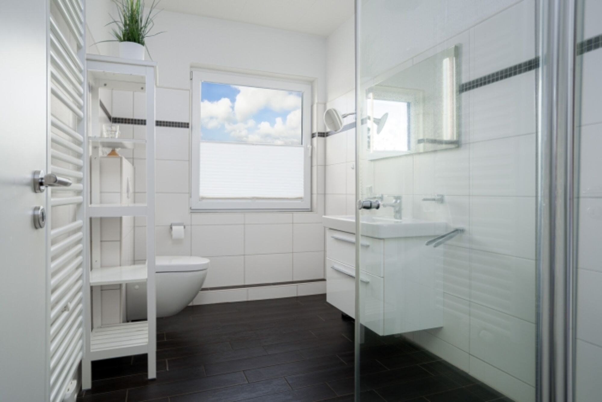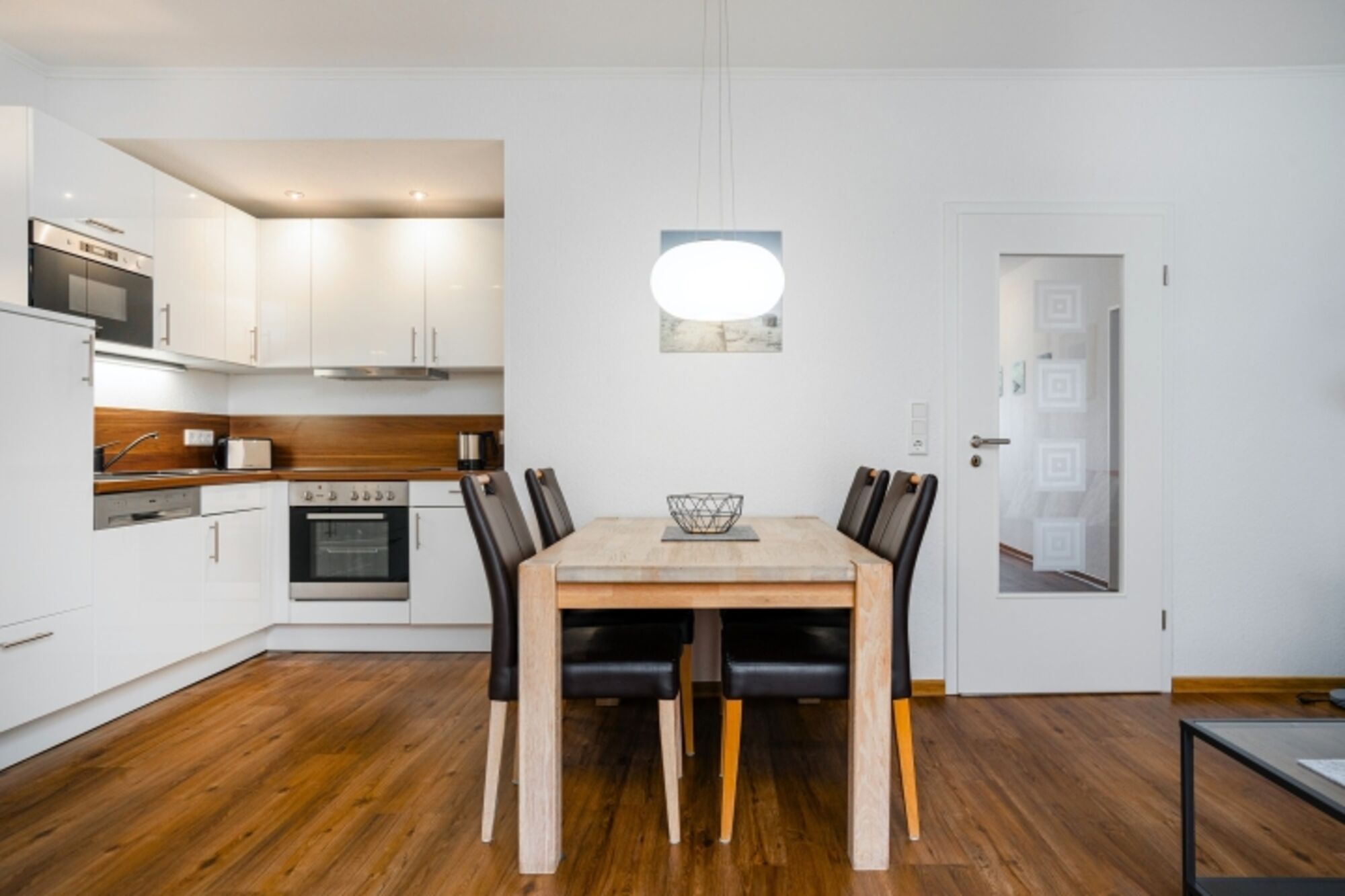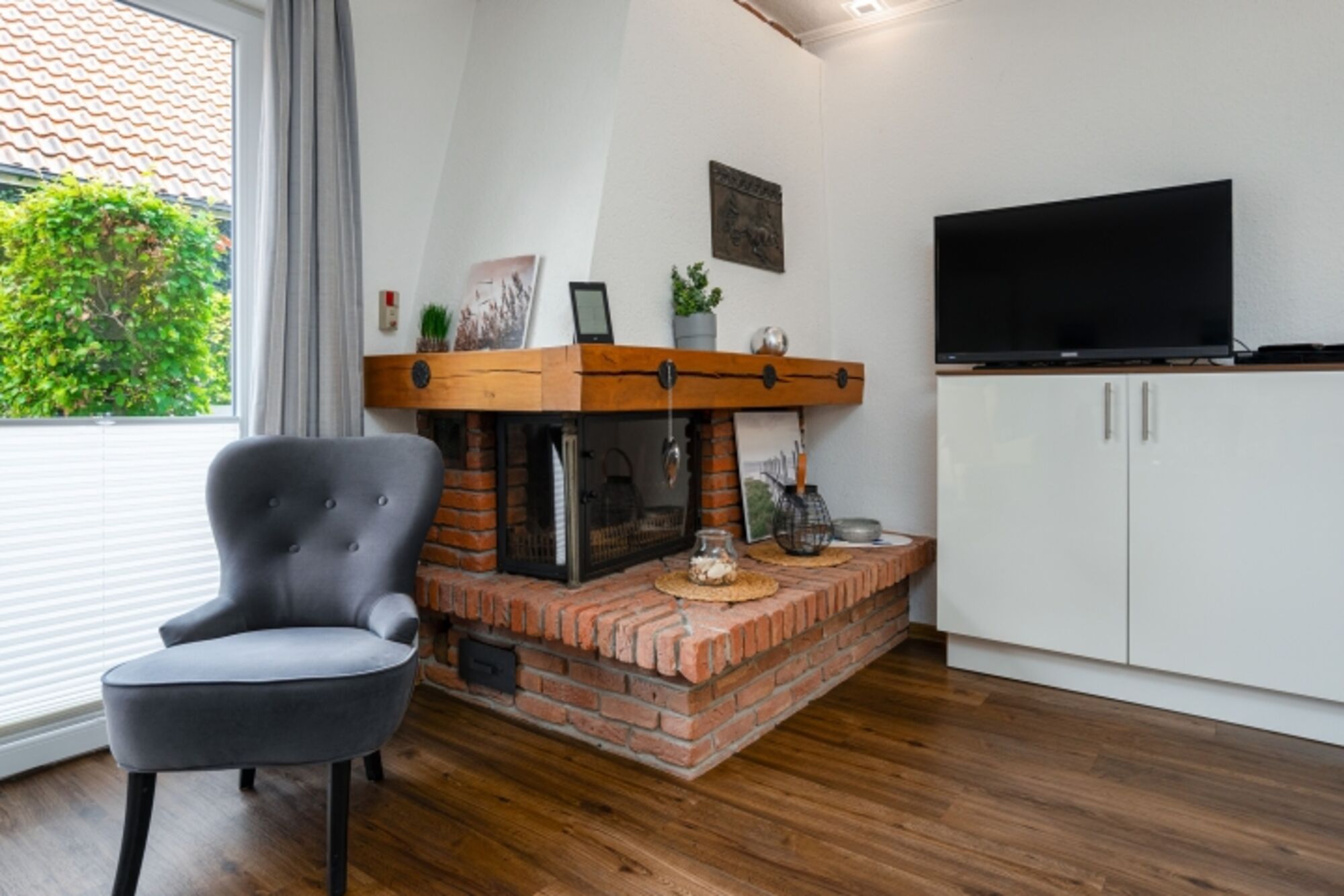 Unsere Wohnung "Nordwind SÜD" bietet die perfekte Kombination aus zentraler Lage und entspannter Privatsphäre. Auf etwa 80qm finden Sie zwei einladende Schlafzimmer mit einem Doppel- und einem Boxspringbett und ausreichend Ablagefläche und ist somit ideal für Familien oder Paare geeignet. Der großzügige Wohnbereich bietet neben einer voll ausgestatteten Einbauküche eine gemütliche Sitzecke sowie einen Kamin, der besonders an kühleren Tagen für eine behagliche Atmosphäre sorgt. Das Tageslichtbad ist hell und mit einer ebenerdigen Dusche ausgestattet. Besonders hervorzuheben ist zum Einen der eigene Parkplatz an der Wohnung sowie die private Terrasse hinterm Haus, auf die Sie sich zurück ziehen und die frische Luft genießen können.