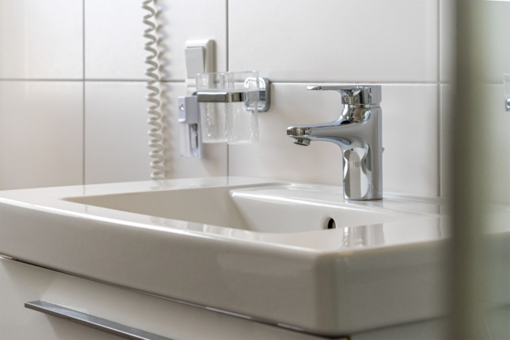 Waschbecken, Spiegel, Fenster im Bad, Fliegengitter