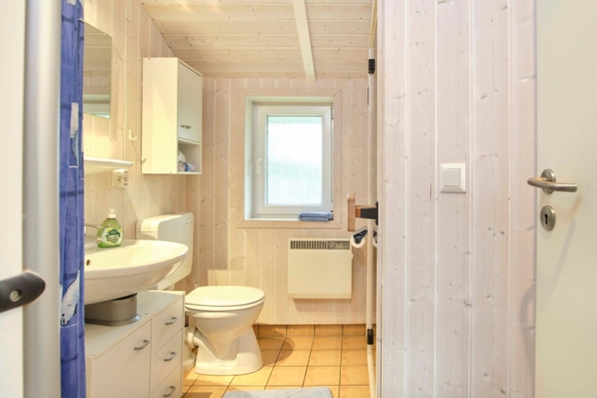 1 Duschbad mit WC, Sauna, (Fußboden: Fliesen mit Fußbodenheizung)