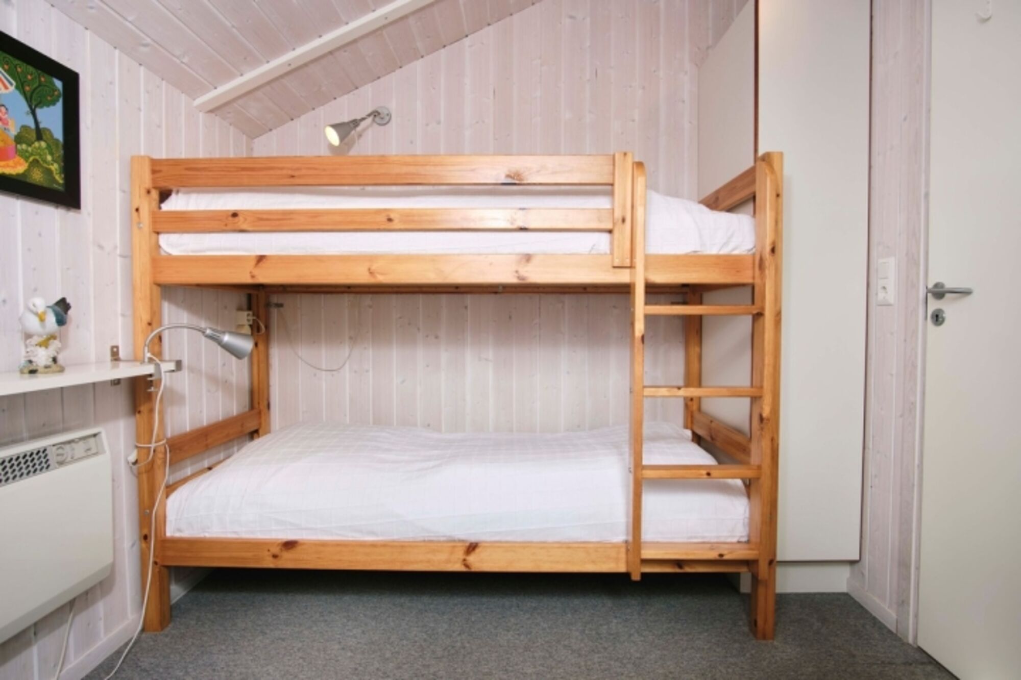 Schlafräume: 1 Schlafraum mit 1 Doppelbett, 1 Schlafraum mit 1 Etagenbett und 1 Schlafsofa; Fußböden: Teppich Doppelbett 1,80 x 2,00m