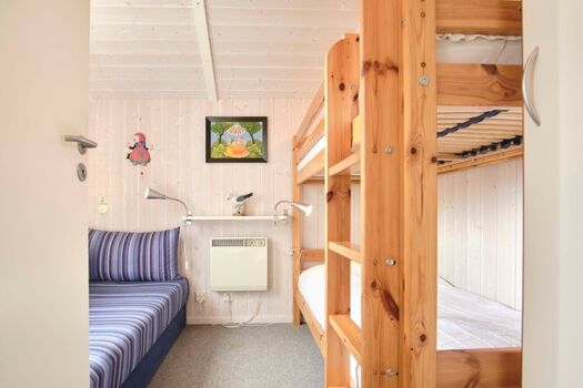 2 Schlafräume: 1 Schlafraum mit 1 Doppelbett, 1 Schlafraum mit 1 Etagenbett (190 cm lang) und 1 Schlafsofa (Fußböden: Teppich)
