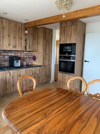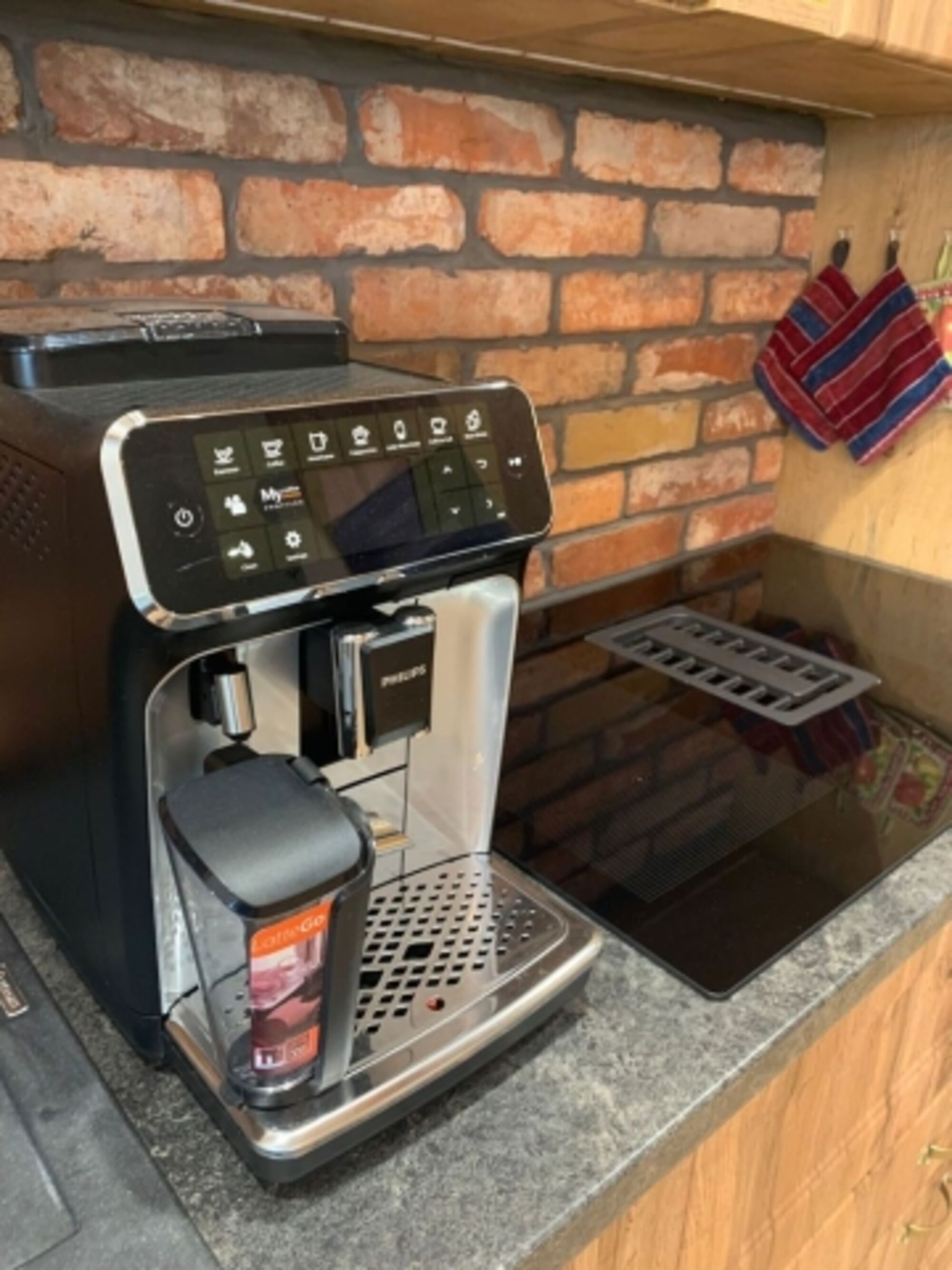 Cerankochfeld, Induktionsherd, Gasofen / Gasherd, Dunstabzugshaube, Kühlschrank mit Gefrierfach, Kaffeevollautomat, Küchenmaschine, Mixer, Korkenzieher / Flaschenöffner, Gewürze (Salz, Pfeffer, Zucker), Geschirrhandtücher, Mülltüten, Essplatz in der Küche