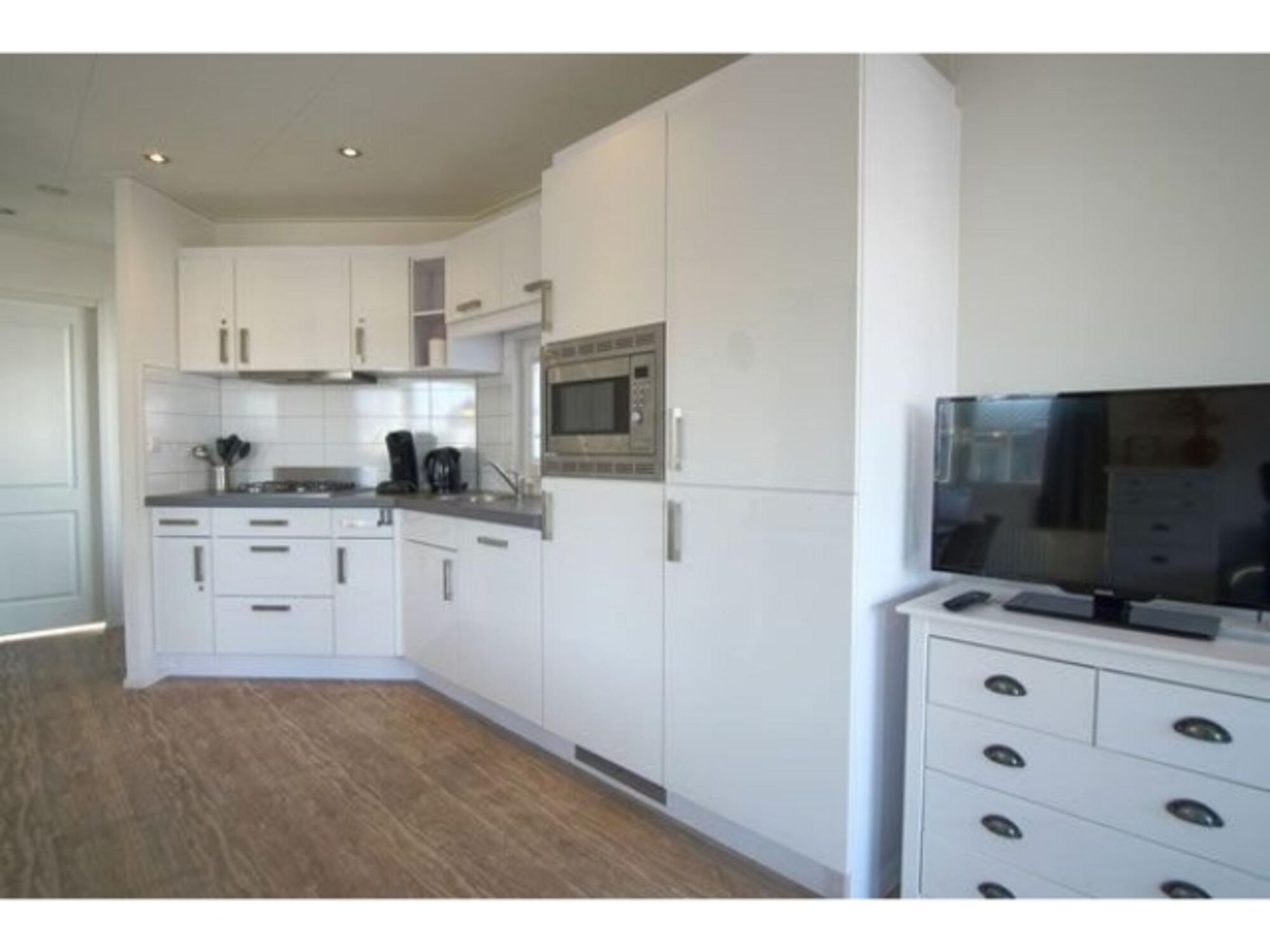 4-Platten Herd, Gasofen / Gasherd, Dunstabzugshaube, Kühlschrank mit Gefrierfach, Nespresso-Automat, Korkenzieher / Flaschenöffner