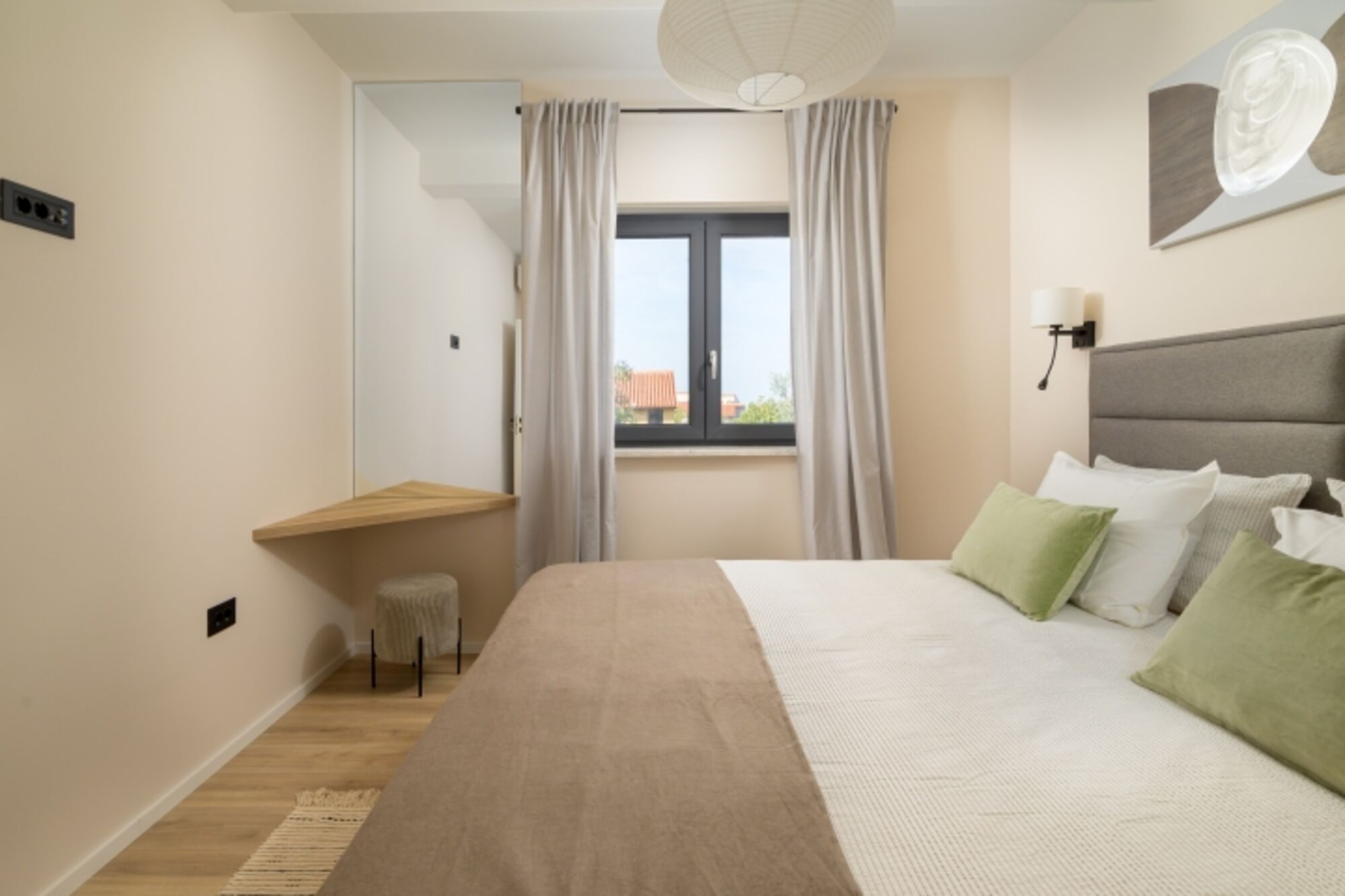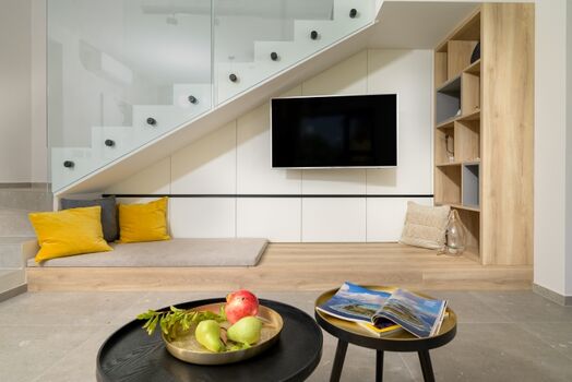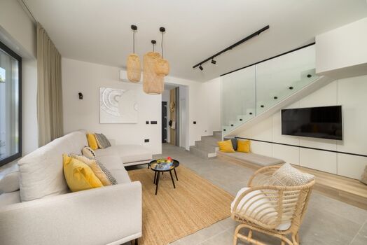 Die Villa Stella Aurea bietet Platz für bis zu 6 Personen in drei komfortablen Schlafzimmern, von denen eines über zwei Einzelbetten verfügt, die zu einem Doppelbett zusammengestellt werden können. Das moderne und sorgfältig gestaltete Interieur sorgt für einen hohen Wohnkomfort während des gesamten Aufenthalts.