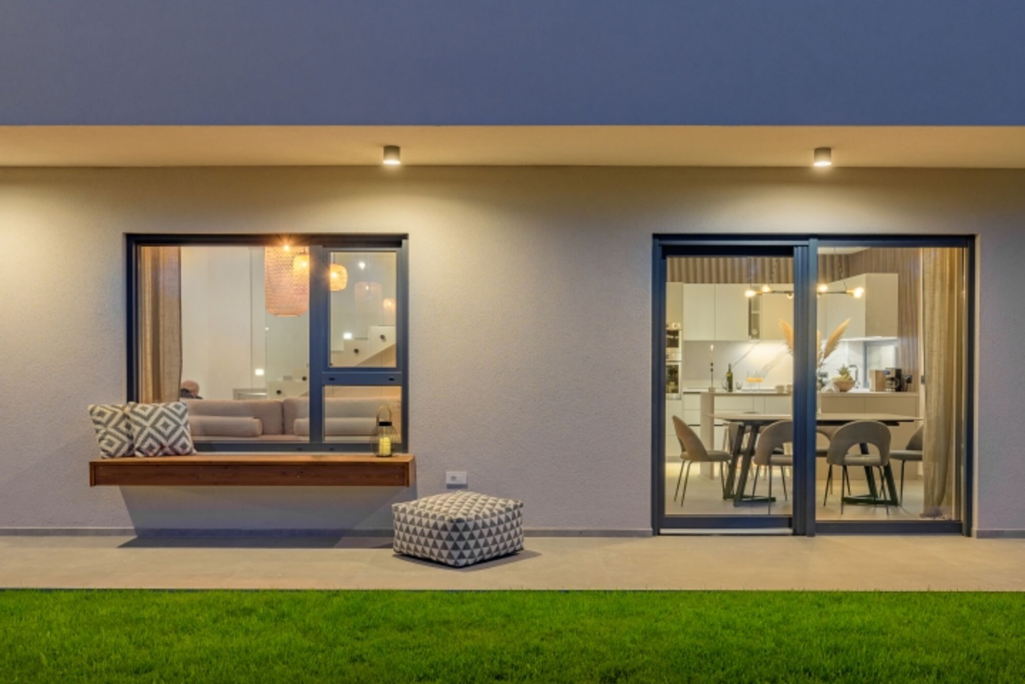 Den Gästen stehen eine voll ausgestattete Küche, ein geräumiger Wohnbereich mit Zugang zur Terrasse sowie ein Außenbereich zur Verfügung, der sich ideal zum Entspannen, Sonnenbaden oder für gesellige Abende eignet. Der private Außenbereich bietet ausreichend Privatsphäre und ist perfekt für Familien oder kleinere Freundesgruppen.
