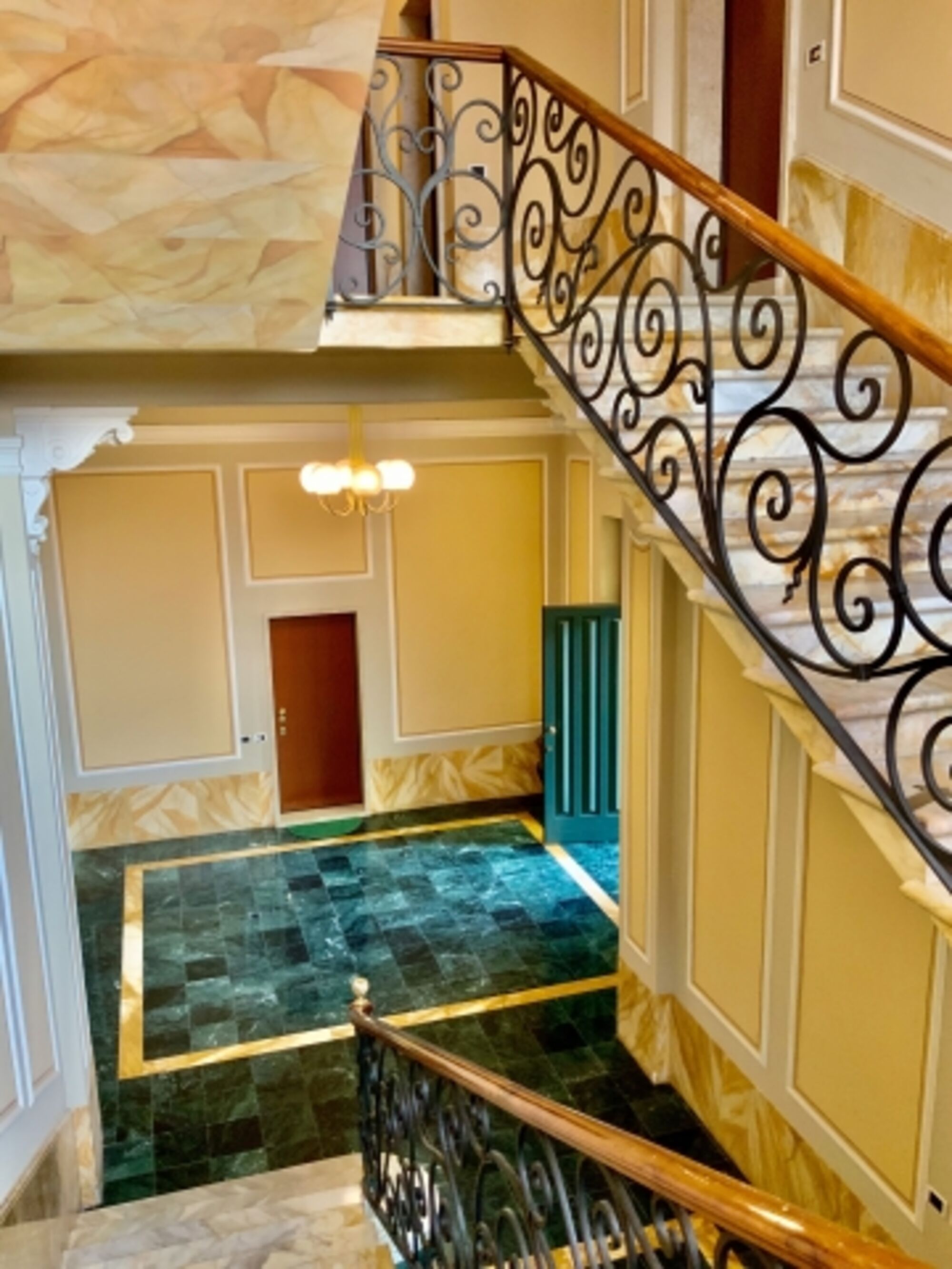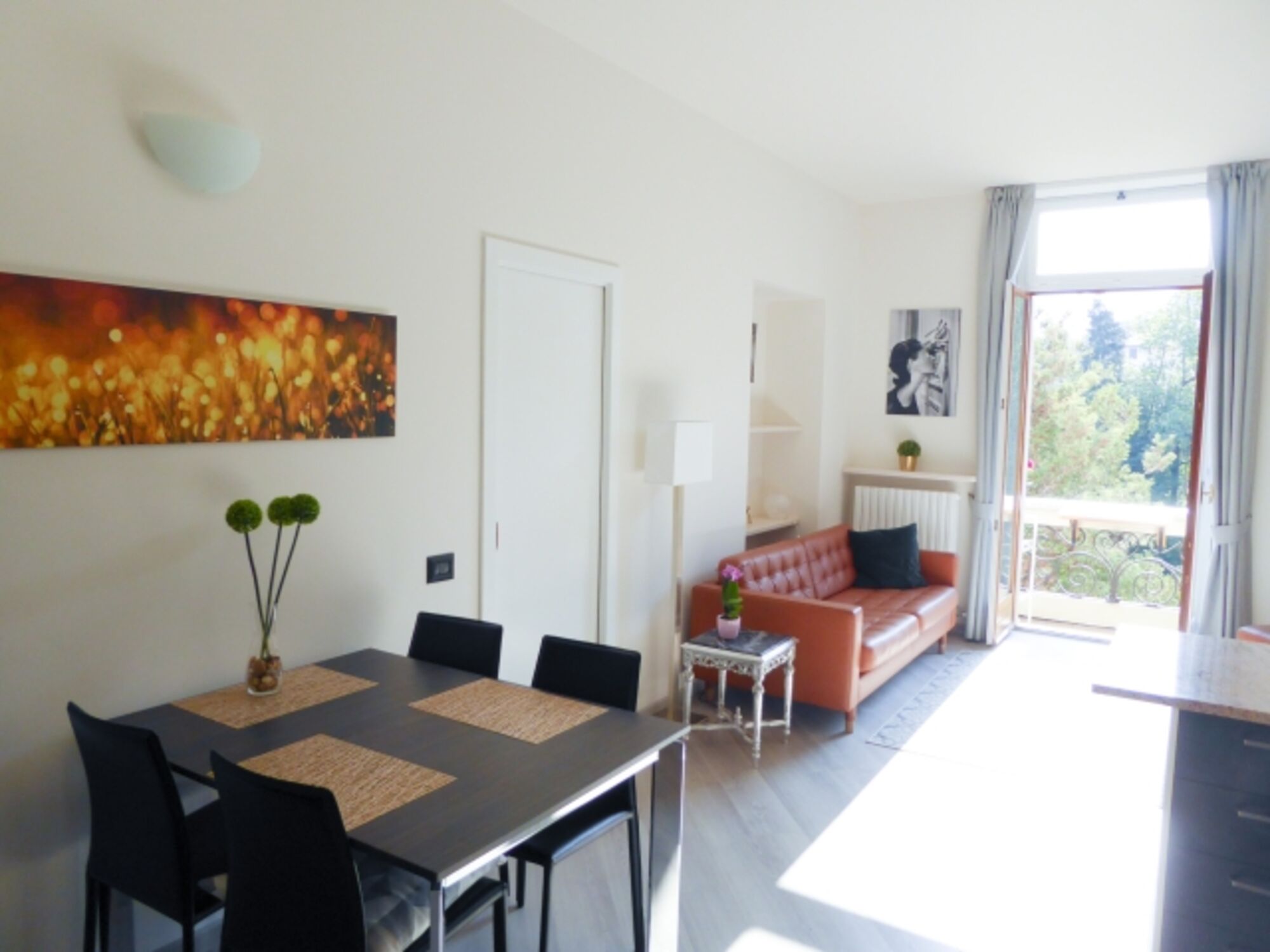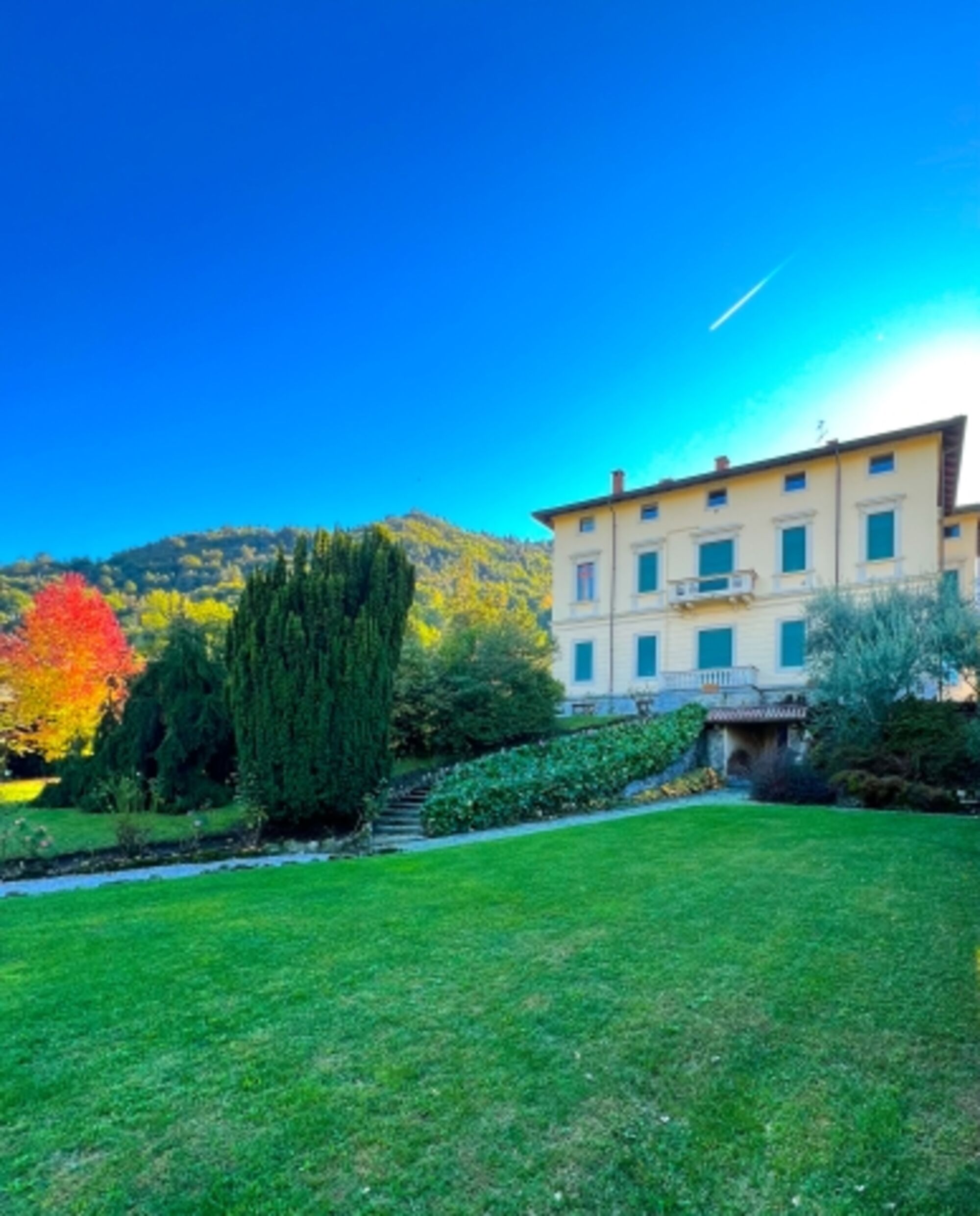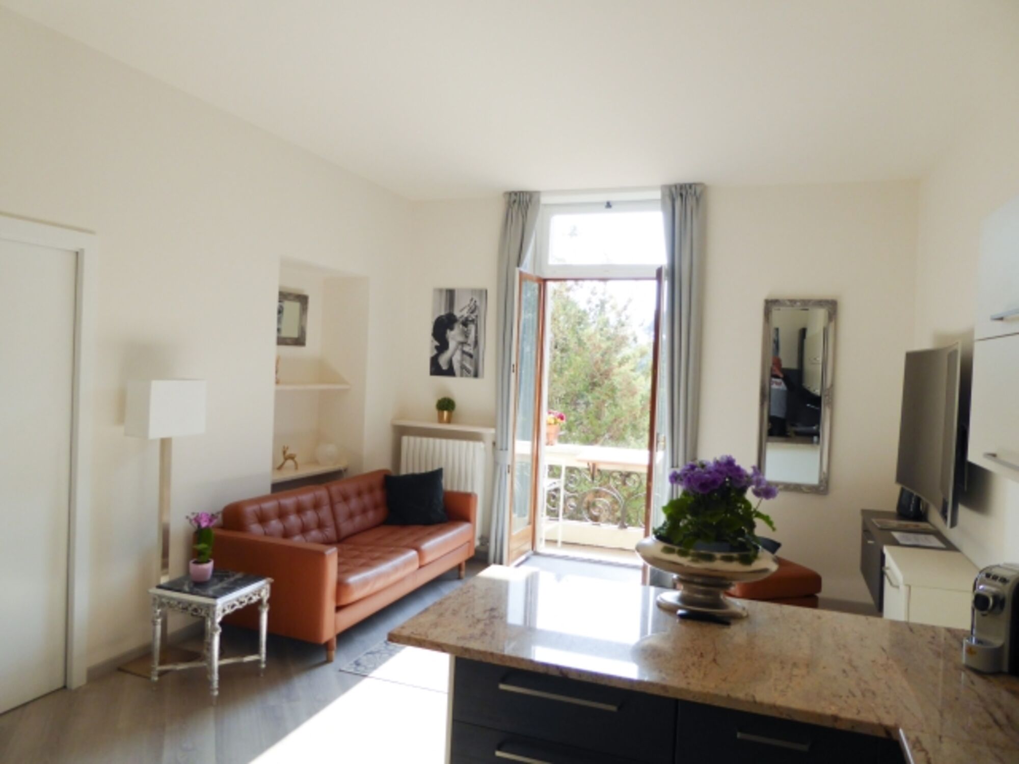 Sobald Sie am schmiedeeisernen Tor des weitläufigen Parks angekommen sind, blicken Sie auf die imposante 200 Jahre alte Villa Morosini. Vorbei an Palmen und einer beeindruckenden Magnolie erreichen Sie das schmucke Gebäude mit seinem in dunkelgrüne und goldfarbene Fliesen gekleidete elegante Treppenhaus. Die großzügige Wohnung befindet sich im ersten Obergeschoss und verfügt über einen modern eingerichteten Tagesbereich mit Balkon (Seeblick) sowie ein großes Schlafzimmer mit bequemem Doppelbett und einem Bad