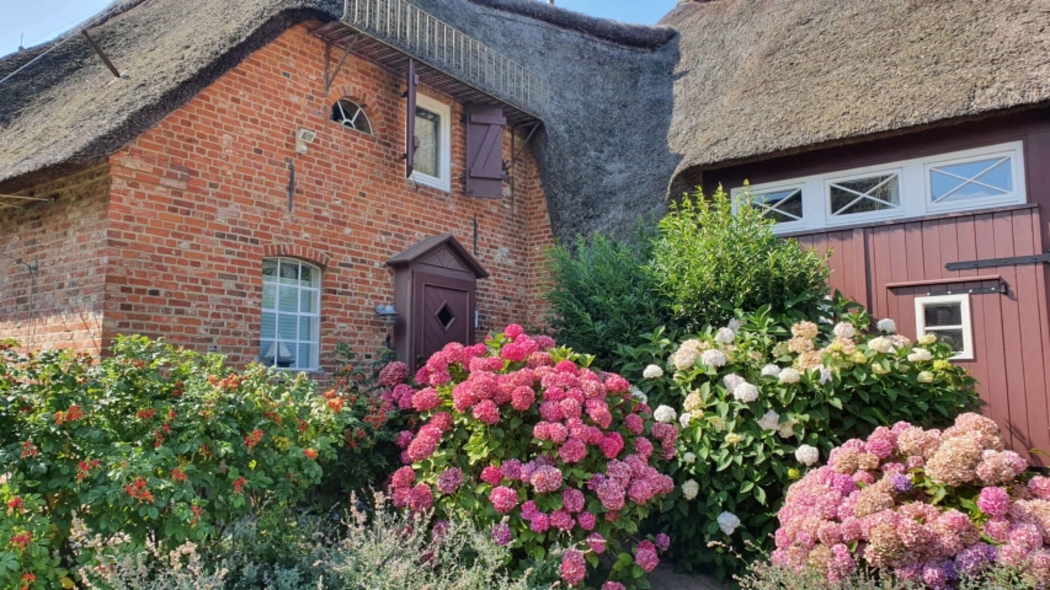 Der historische Hahnenhof Föhr unter Reet liegt ruhig und idyllisch, in schöner Natur am Rande der Wrixumer Marsch. Ein perfekter Startpunkt für ausgedehnte Fahrradtouren und erholsame Spaziergänge.