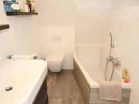 Des weiteren befindet sich im Erdgeschoss eine separate Küche und ein Duschbad. Im Obergeschoss befinden sich 2 Schlafzimmer und ein Bad mit Badewanne.