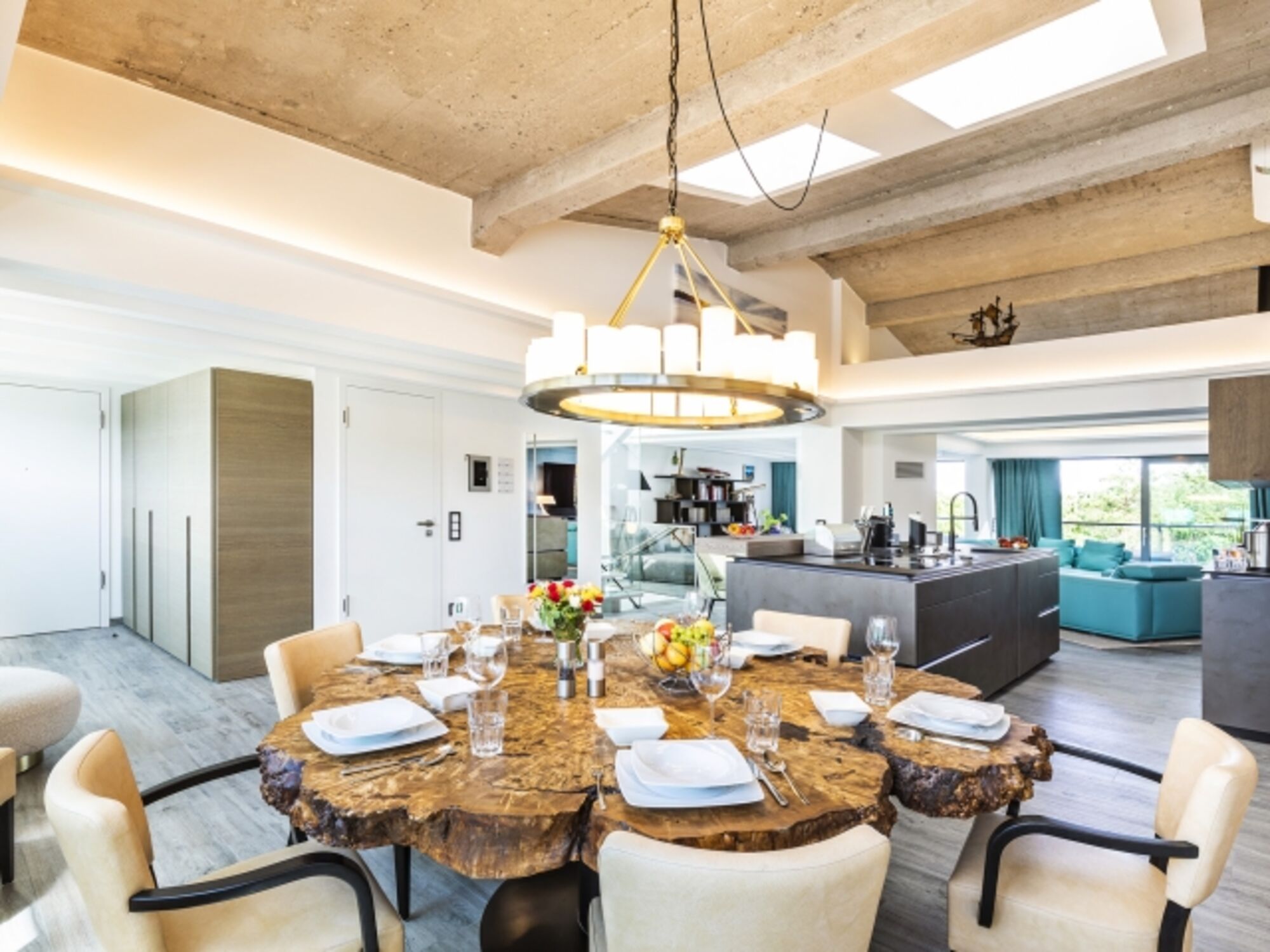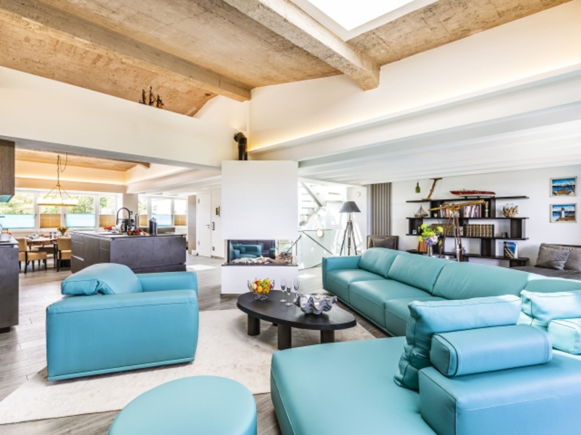 In der großzügigen Penthouse Wohnung, mit W-Lan und Ostseeblick, stehen Ihnen für Ihren Schlafkomfort drei Schlafzimmern zur Verfügung. Der zentrale Wohn-Essbereich mit Kamin bietet ausreichend Platz für bis zu acht Personen am großen Esstisch sowie auf der bequemen Couch.