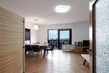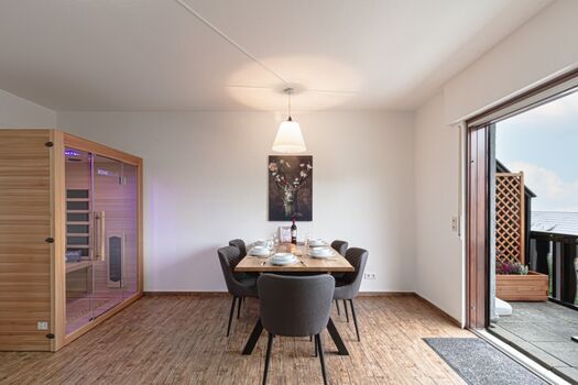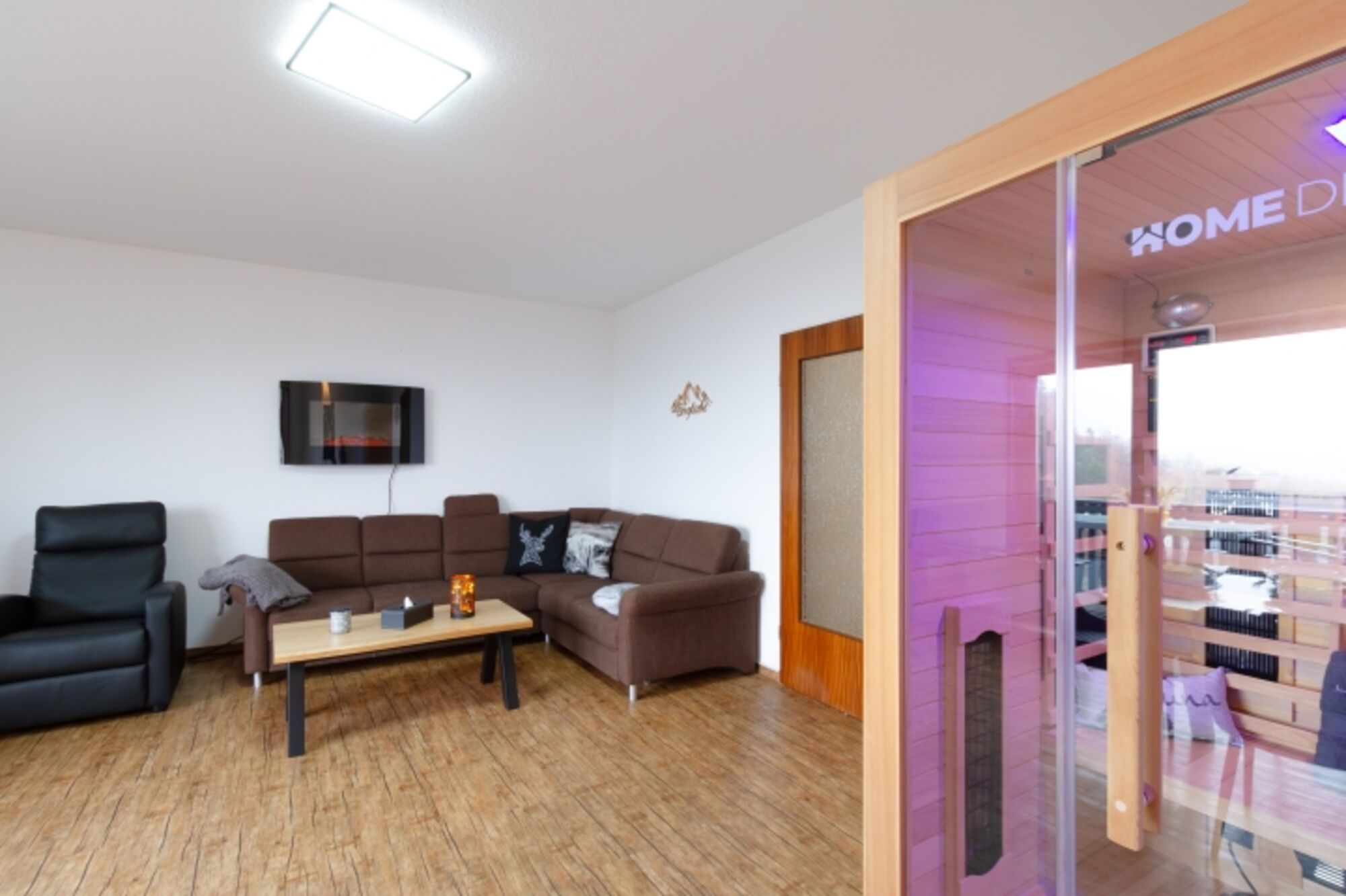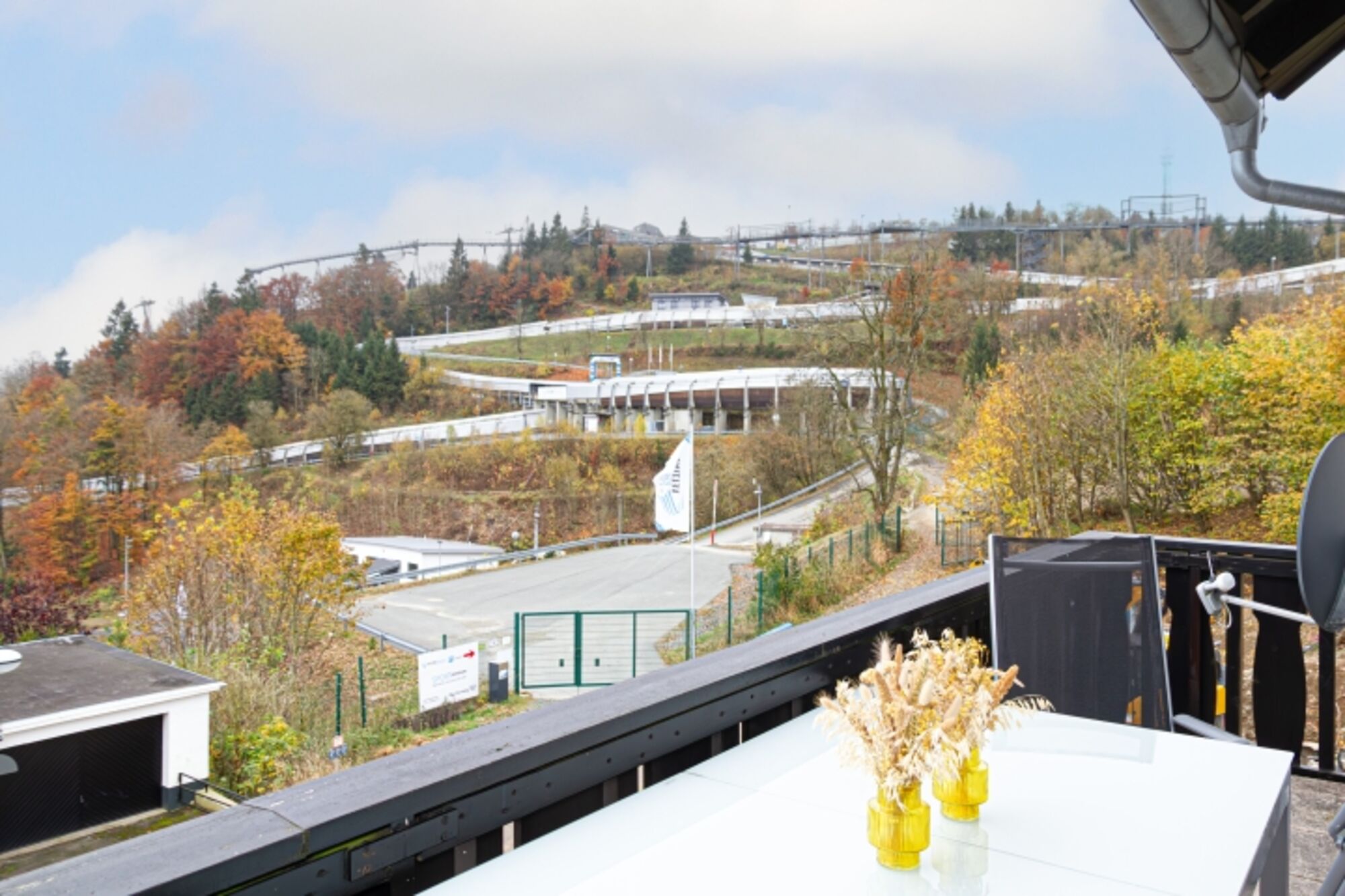 Insgesamt 65 qm lichtdurchflutet verteilen sich auf eine Diele, ein geräumiges Wohn-Esszimmer mit einer Infrarot Sauna wo man den Tag ausklingen lassen kann von der Sauna aus hat man ein direkten Blick auf die Natur durch das große Balkon Fenster. Gönnen Sie sich nach dem saunieren eine Massage auf dem Massagesessel. Vom Wohn-Essbereich gelangen Sie auf den großen Südbalkon mit einem Ausblick auf die Natur und Bobbahn. Die Wohnung verfügt über ein großes und kleines Schlafzimmer. Eine voll ausgestattet Tageslichtküche, ein Badezimmer mit Dusche und ein kleiner Abstellraum.