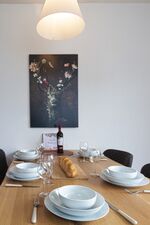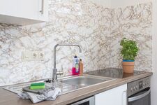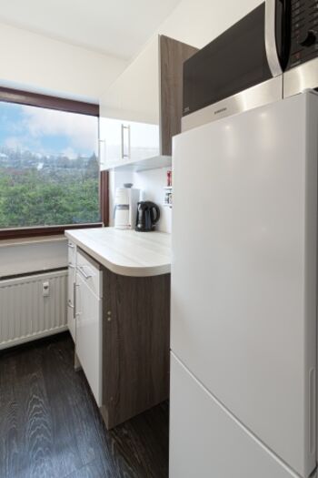 Cerankochfeld, Kühlschrank mit Gefrierfach, Gefrierschrank, Nespresso-Automat, Mixer, Korkenzieher / Flaschenöffner, Gewürze (Salz, Pfeffer, Zucker), Öl / Essig, Geschirrhandtücher, Mülltüten