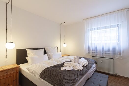 Doppelbett 1,80 x 2,00m, Boxspringbett, Leselampe am Bett, Fliegengitter