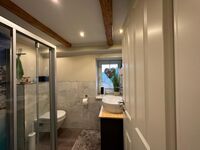 Zur Ausstattung gehört außerdem Highspeed-WLAN und ein Smart TV mit Streaming-Diensten. Waschmaschine und Trockner befinden sich im EG.