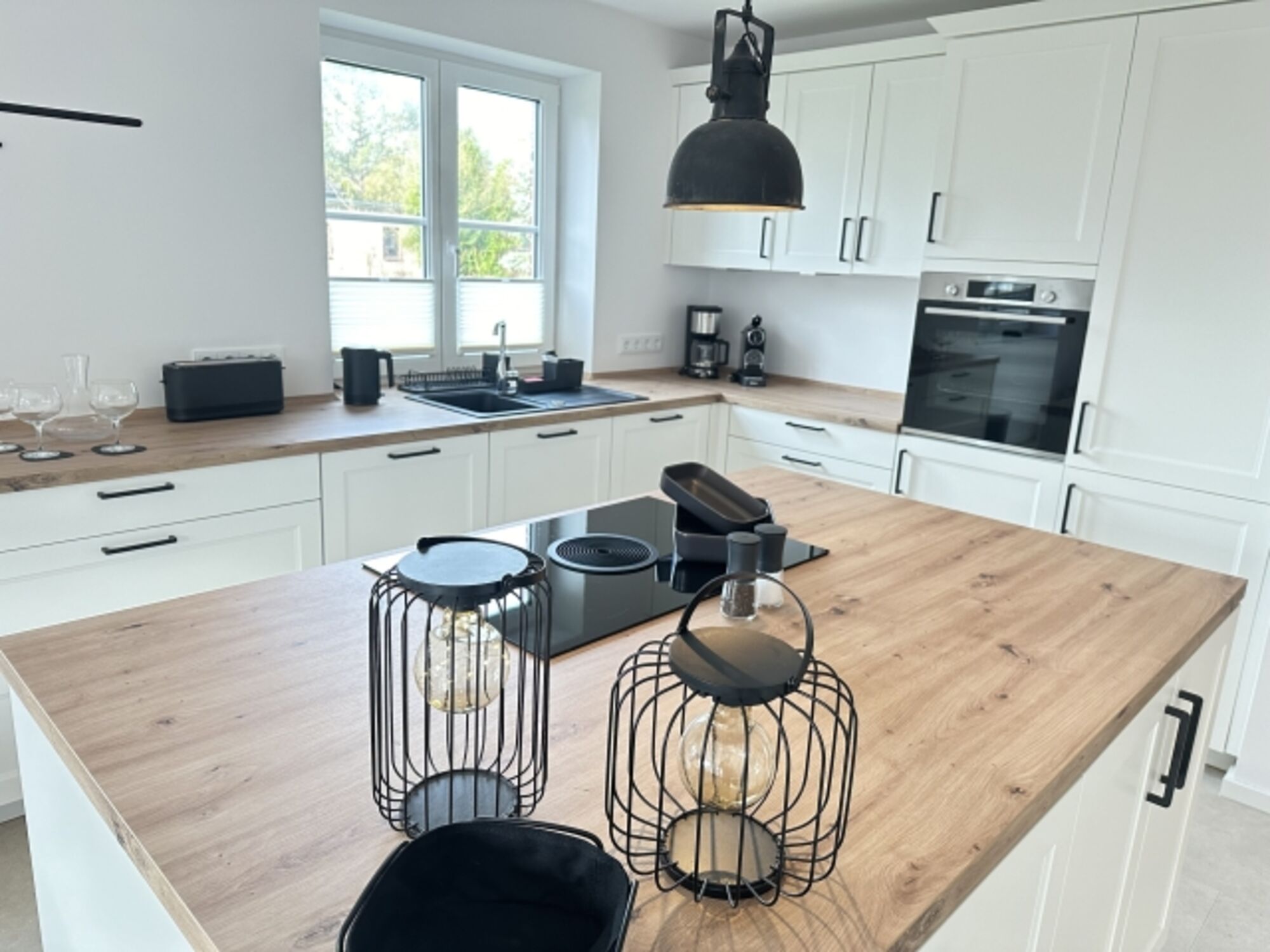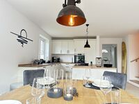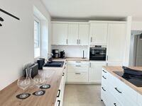 Die offene, moderne Küche ist großzügig gestaltet und voll ausgestattet, inklusive Geschirrspüler, damit Sie sich wie zu Hause fühlen. Waschmaschine und Trockner stehen ebenso zur Verfügung wie WLAN im gesamten Haus.