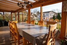 Die funktionale Einrichtung, welche unter anderem zwei Küchen, zwei moderne Duschbäder, sowie einen großzügigen Essbereich im Wintergarten umfasst, sorgt für zusätzlichen Komfort und Flexibilität.
