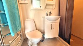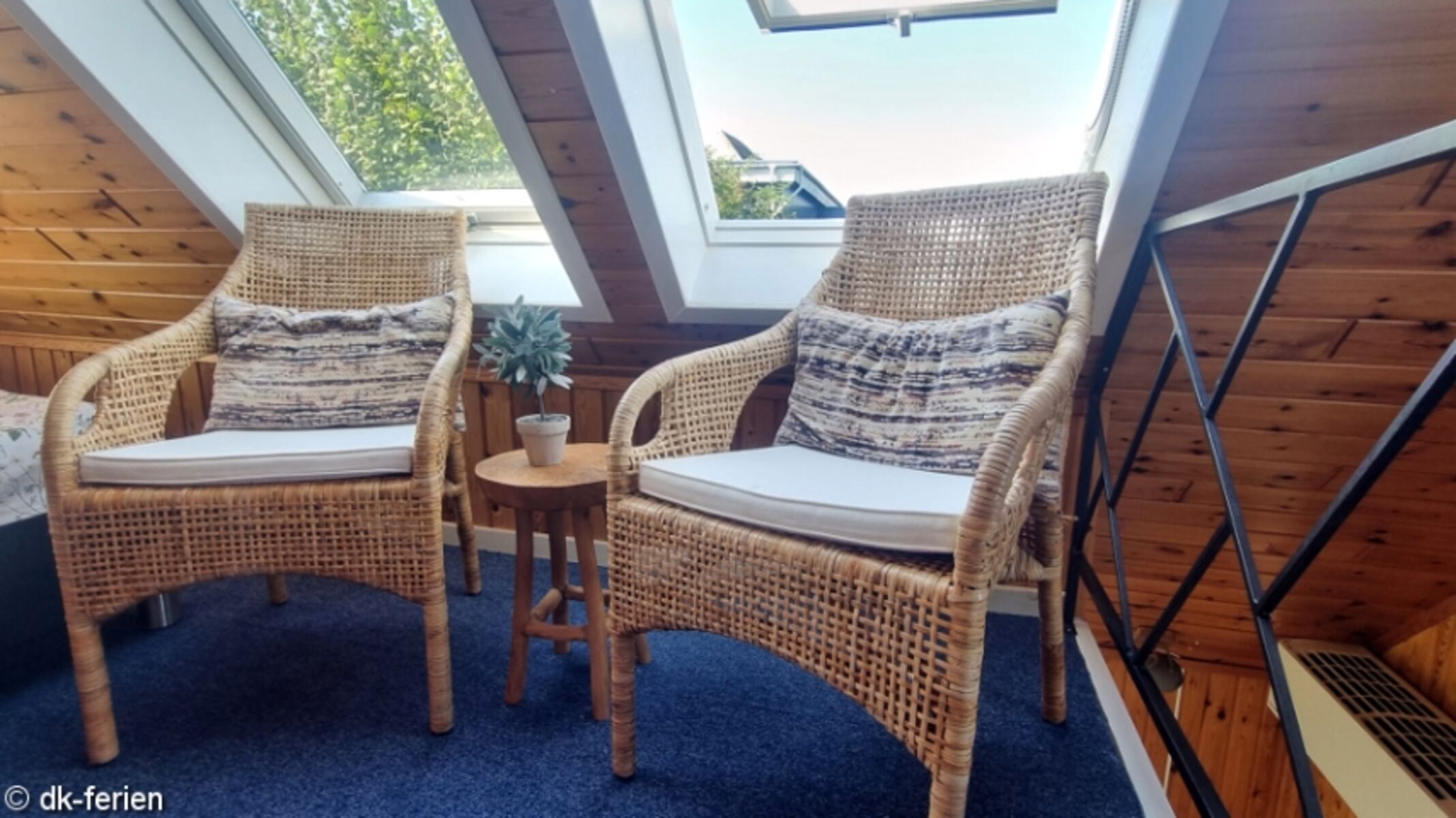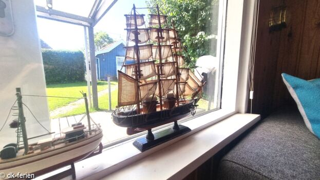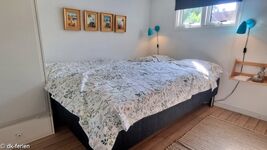 Das Schlafzimmer mit Doppelbett lädt nach einem erlebnisreichen Tag zu erholsamen Stunden ein. Zusätzlich bietet der offene Schlafboden (Hems), erreichbar über eine Treppe mit Handlauf, ein weiteres Doppelbett. Der Hems verfügt über eine kleine Sitzecke und Dachfenster, die eine gemütliche Atmosphäre schaffen und einen herrlichen Blick aufs Meer ermöglichen.