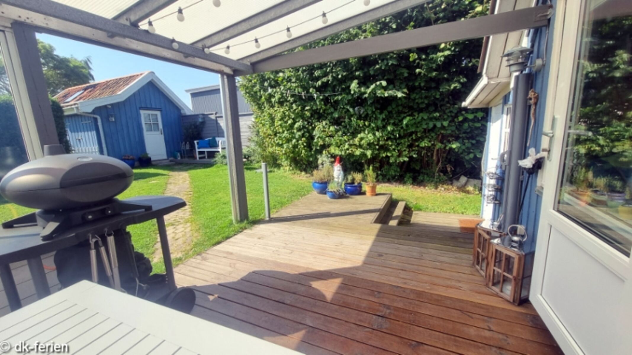 Ganz nah zum Sandstrand & doppekt eingezäunt: Terrasse und Grundstück