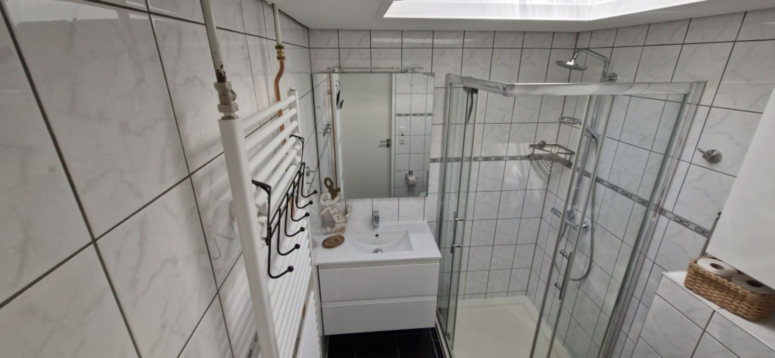 • Badezimmer: Frisch renoviert mit Regendusche – ebenfalls im Erdgeschoss.