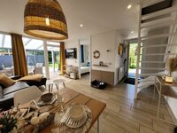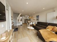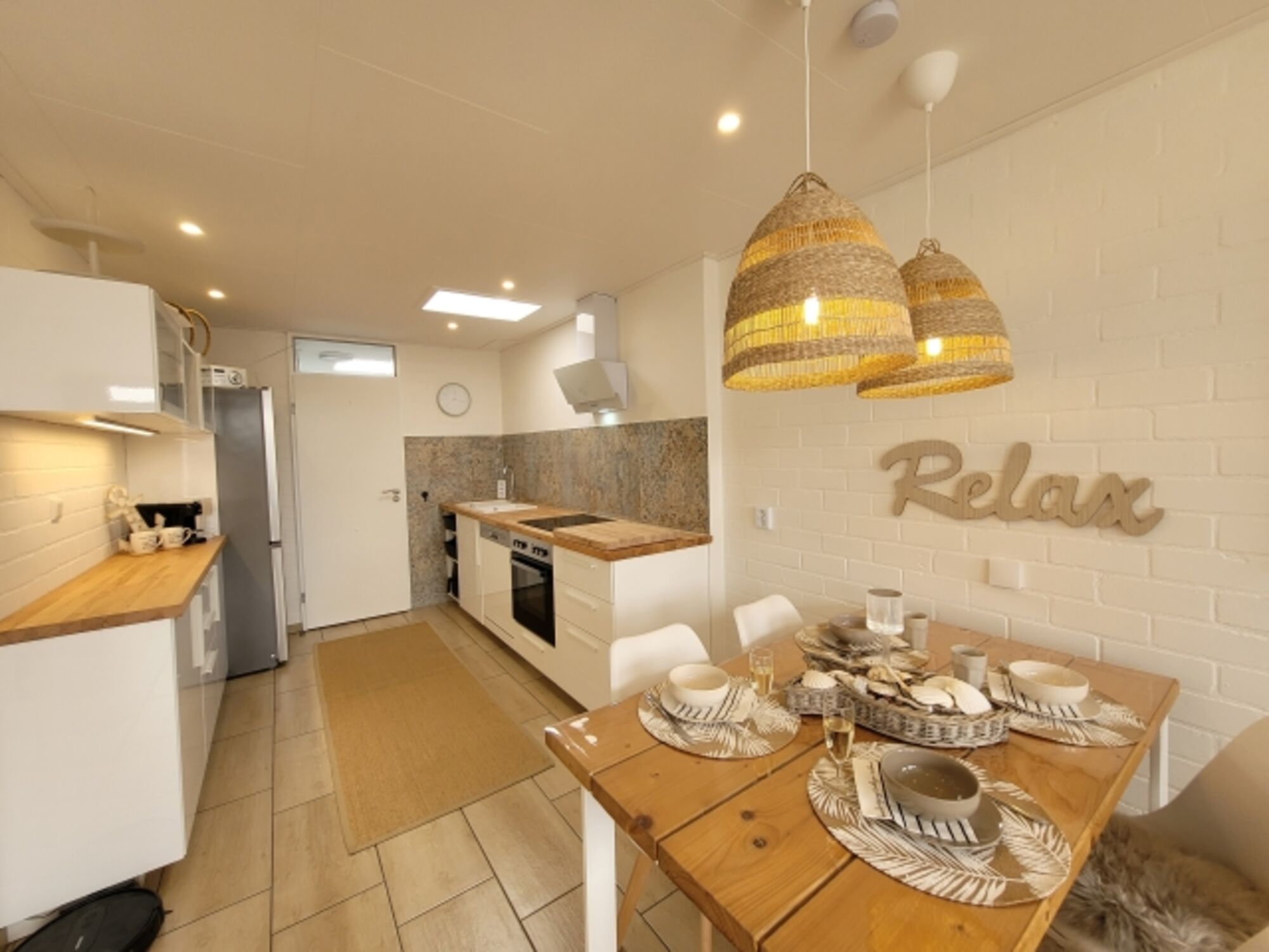 • Offene Küche (neu 2025): Voll ausgestattet mit Geschirrspüler, Ceranfeld, Backofen, Mikrowelle, Nespresso-Kapsel-Kaffeemaschine, Filterkaffeemaschine, Wasserkocher, Toaster, Stabmixer und großer Kühl-Gefrierkombination.
