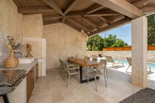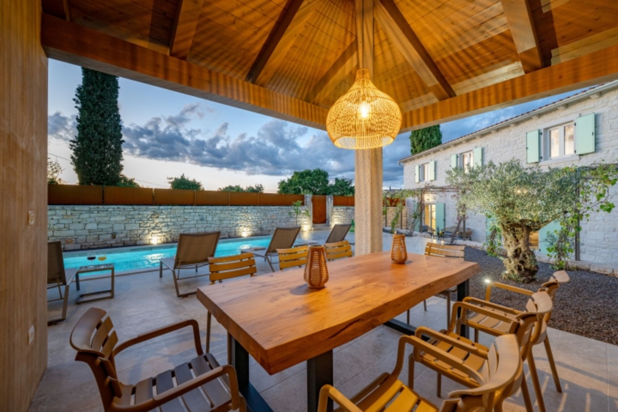 Die Villa Lapidea ist der ideale Ort zum Entspannen und Genießen der Schönheit Istriens. Diese luxuriöse Villa vereint auf perfekte Weise modernen und traditionellen Design, was ein unglaubliches Maß an Komfort und Bequemlichkeit bietet. Geräumige Innenräume, raffinierte Details und erstklassige Annehmlichkeiten garantieren Ihnen völlige Entspannung und Privatsphäre während Ihres Aufenthalts. Genießen Sie den erfrischenden Pool, der an heißen Sommertagen der perfekte Ort zum Abkühlen ist. Hier erleben Sie die Harmonie zwischen Tradition und modernen Elementen, was Ihnen einen unvergesslichen Urlaub im Herzen Istriens garantiert.