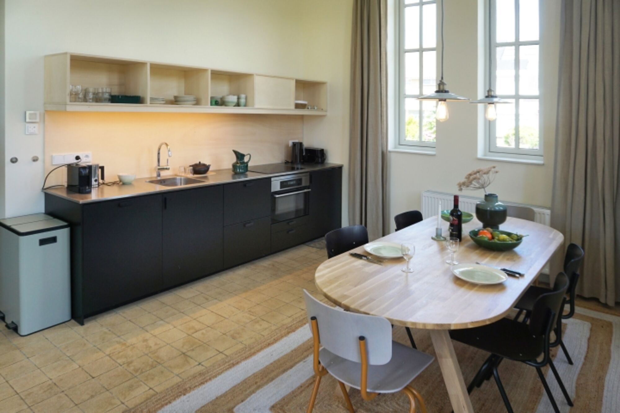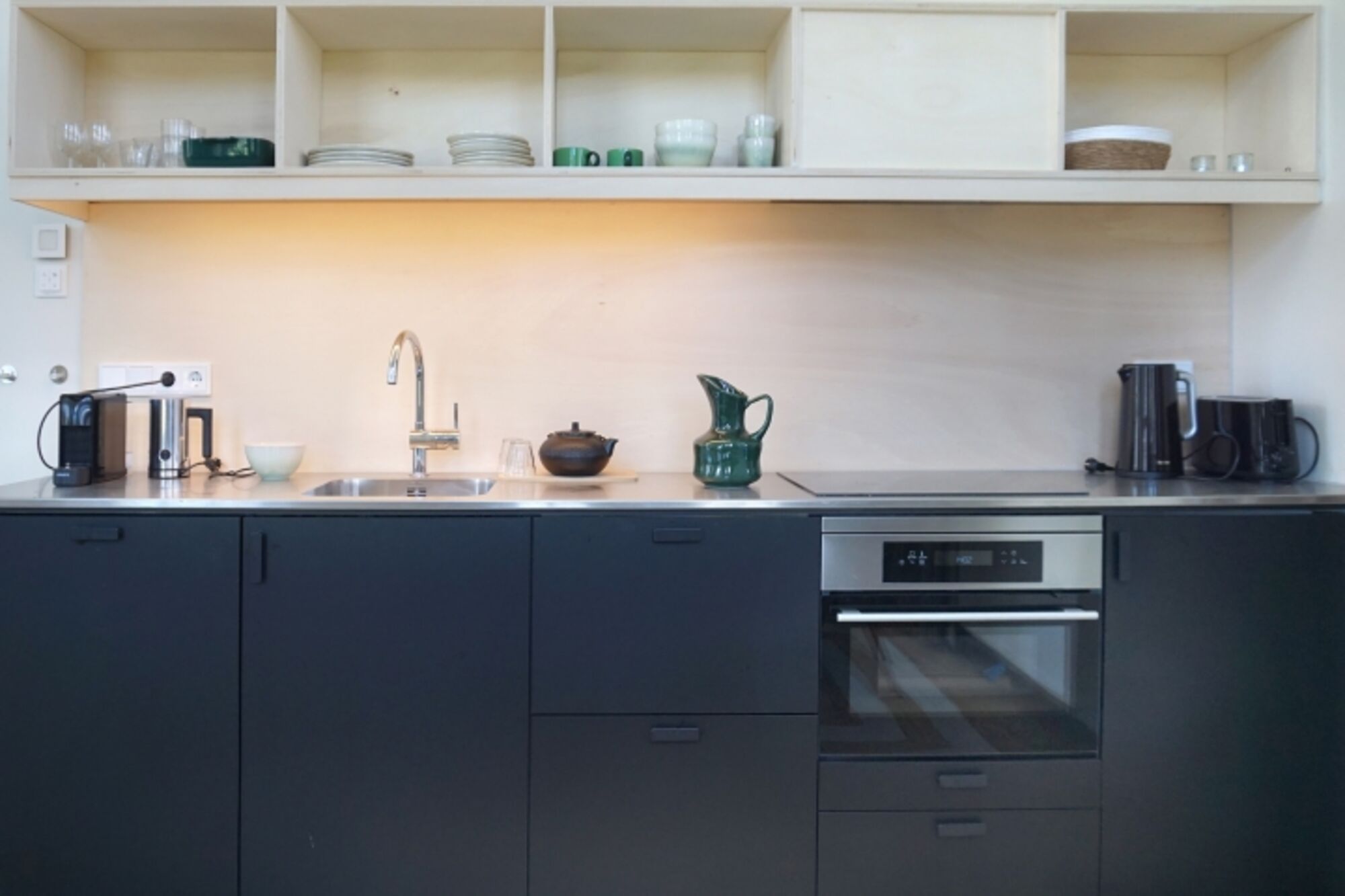 4-Platten Herd, Induktionsherd, Kühlschrank mit Gefrierfach, Nespresso-Automat, Mixer