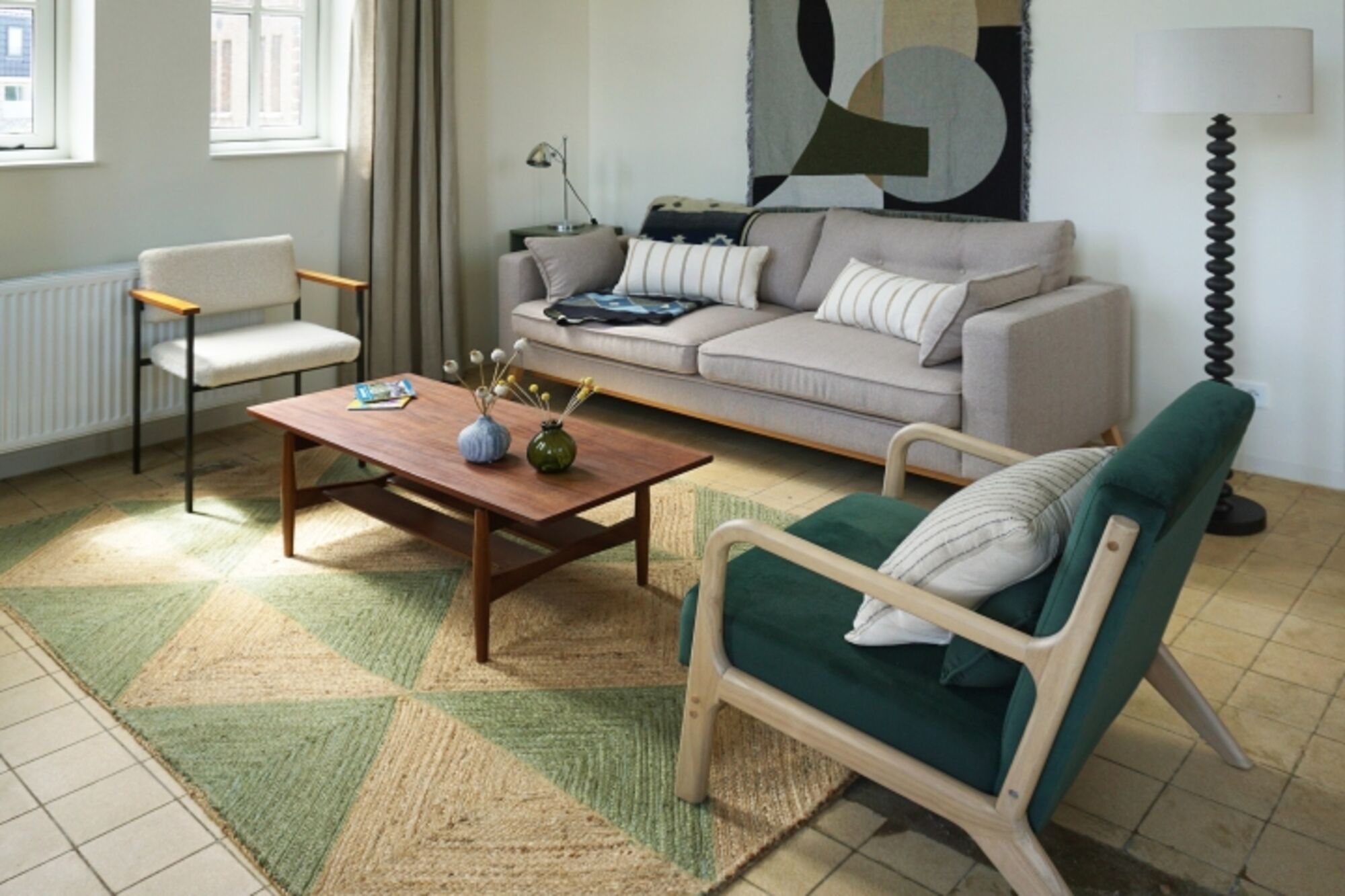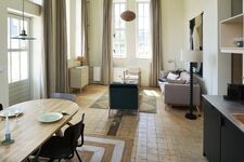 Der Wohnbereich verfügt über ein bequemes Sofa, außerdem ein Schlafsofa und zwei Sessel. Im anderen Teil des Raumes gibt es einen gemütlichen Esstisch und eine offene Küche. Die offene Küche verfügt über einen Kühlschrank mit Gefrierfach, ein 4-Flammen-Induktionskochfeld, einen Kombi-Backofen mit Mikrowelle und einen Geschirrspüler. Außerdem gibt es eine Nespresso-Kaffeemaschine, einen Wasserkocher, einen Toaster und alle üblichen Küchenutensilien. Das Schlafzimmer verfügt über ein Doppelbett und ein integriertes kompaktes Badezimmer mit Dusche, Waschbecken und Toilette.