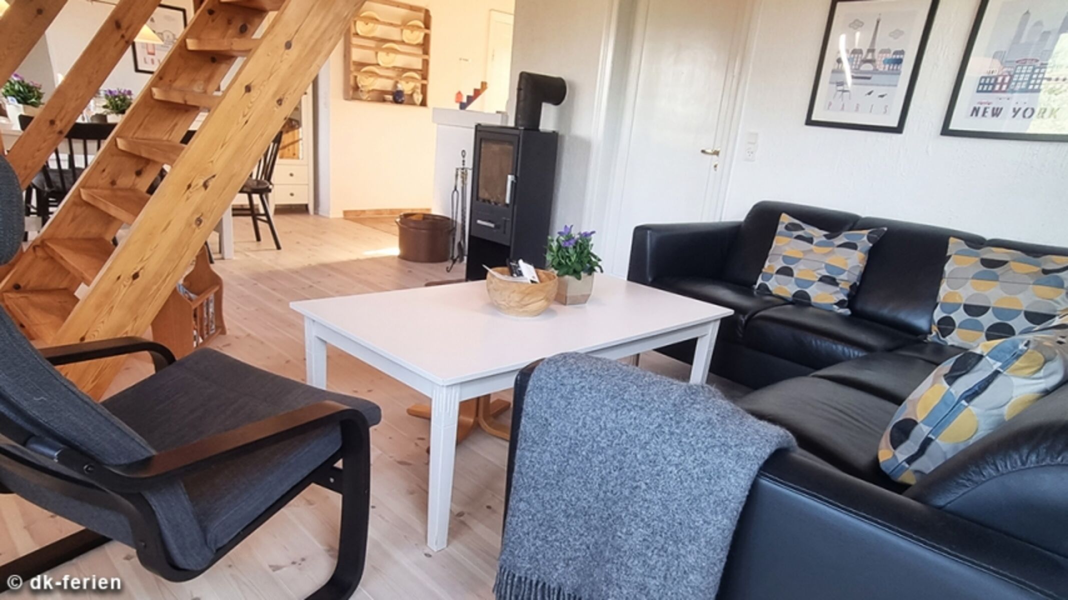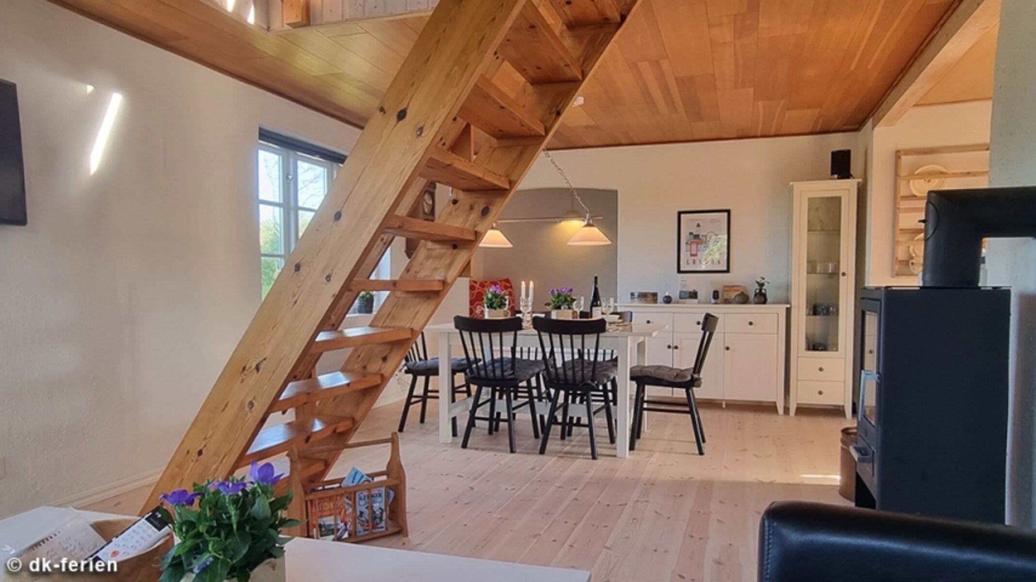Im Erdgeschoss erwarten Sie helle, großzügige Räume mit einer gemütlichen Einrichtung, die eine einladende Wohlfühlatmosphäre schaffen. Der offene Wohn- und Essbereich mit Sofaecke, TV, und wärmendem Ofen wird zum zentralen Treffpunkt. Ein integrierter Alkoven bietet zusätzliche Schlafmöglichkeiten für zwei Personen. Die moderne Küche ist bestens ausgestattet, und am Esstisch lassen sich Mahlzeiten und Spieleabende gleichermaßen genießen. Ein Schlafzimmer mit Doppelbett und ein Duschbad runden das Angebot auf dieser Ebene ab.