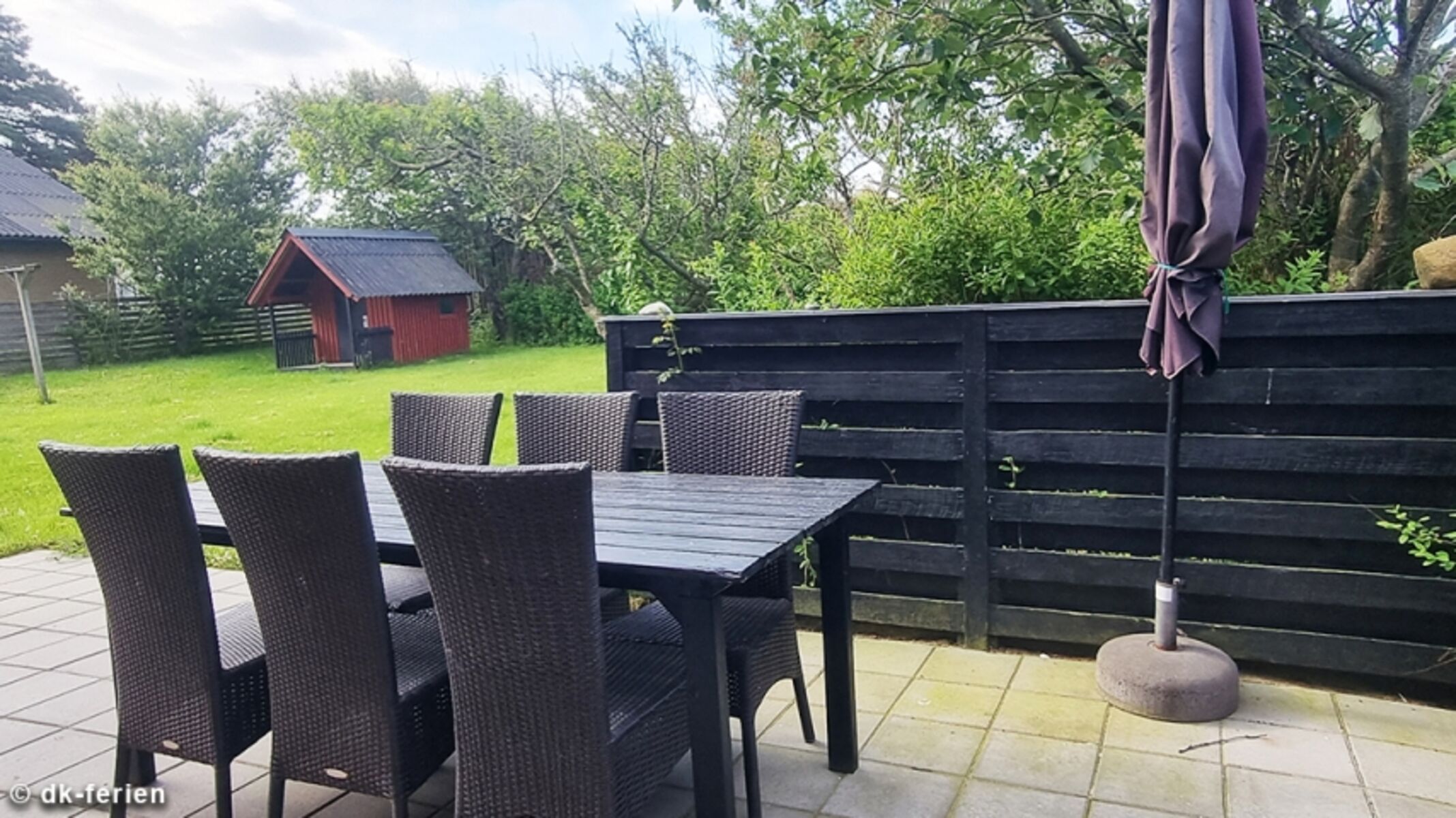 Ganz nah zum Sandstrand & doppekt eingezäunt: Terrasse und Grundstück