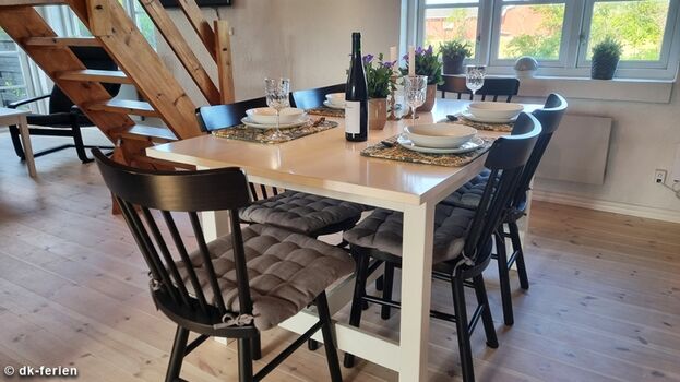 | Ihr geheimer Urlaubstipp: | Mein persönlicher Tipp für Gäste dieses – oder eines der anderen Häuser, die ich in Dänemark und Norddeutschland anbiete: Gib deinem Urlaub Zeit, sich zu entfalten. Die besondere Lage am Meer und in der weiten Landschaft schafft eine Ruhe, die man nicht planen kann – man muss sie einfach wirken lassen. Früh am Morgen, wenn die Welt noch leise ist, fühlt sich ein Spaziergang draußen fast wie ein kleines Geheimnis an. Dein Hund schnuppert neugierig am Wegesrand, die Luft ist klar, und der Tag beginnt ganz ohne Eile. Auch am Abend zeigt dieser Ort seinen Zauber. Wenn das Licht weicher wird und der Himmel sich langsam färbt, lohnt es sich, noch einmal hinauszugehen – vielleicht nur ein paar Schritte, vielleicht bis ans Wasser oder über die Felder. Solche Momente bleiben. Nicht, weil sie spektakulär sind, sondern weil sie sich echt anfühlen. Und zurück im Haus darf einfach nichts mehr müssen. Die Terrasse, ein warmer Tee oder ein Glas Wein, ein zufriedener Hund zu deinen Füßen – genau das sind die Augenblicke, in denen aus Urlaub echte Erholung wird. |