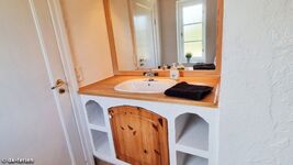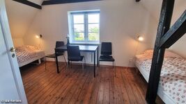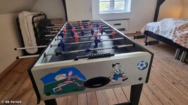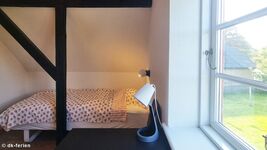 Im Obergeschoss sorgen freiliegende Balken in zwei geräumigen Schlafzimmern für ein gemütliches Ambiente. Eines der Zimmer ist mit einem Doppelbett und einem Klappbett ausgestattet, das andere bietet zwei Einzelbetten. Das zweite Duschbad liegt praktisch zwischen den beiden Räumen und ist gut erreichbar.
