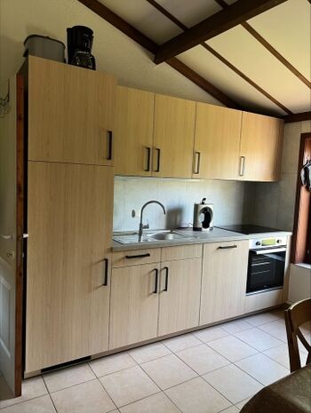 4-Platten Herd, Dunstabzugshaube, Korkenzieher / Flaschenöffner, Gewürze (Salz, Pfeffer, Zucker), Öl / Essig, Essplatz in der Küche