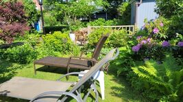 Oder Sie bleiben einfach bei unserem Haus und genießen den großen Garten mit Terrassen, Liegeflächen, Blumen, Sträuchern, Beeten und Rasenflächen. Hier können Sie mit einem Buch, Hörbuch oder Zeitung lesen, sich die zahlreichen Vögel, Schmetterlinge usw. ansehen.