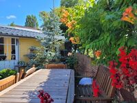 Unser 1200 qm Garten mit Baumbestand, Sträuchern, Beeten, Hecken und Wegen, sowie Terrassen und Grünflächen steht zur Verfügung. Sie haben eine eigene Terrasse und Liegefläche. Zusätzlich noch einen Balkon/Südseite. Vom Haus aus können Sie schöne Radtouren oder Spaziergänge machen, aber auch auf dem nahegelegenen Kanal mit dem Boot fahren.