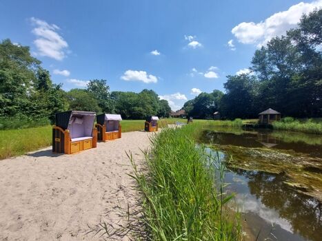 Unser neuestes Highlight ist unser kleiner privater "Strandbereich" rund um unseren Teich.