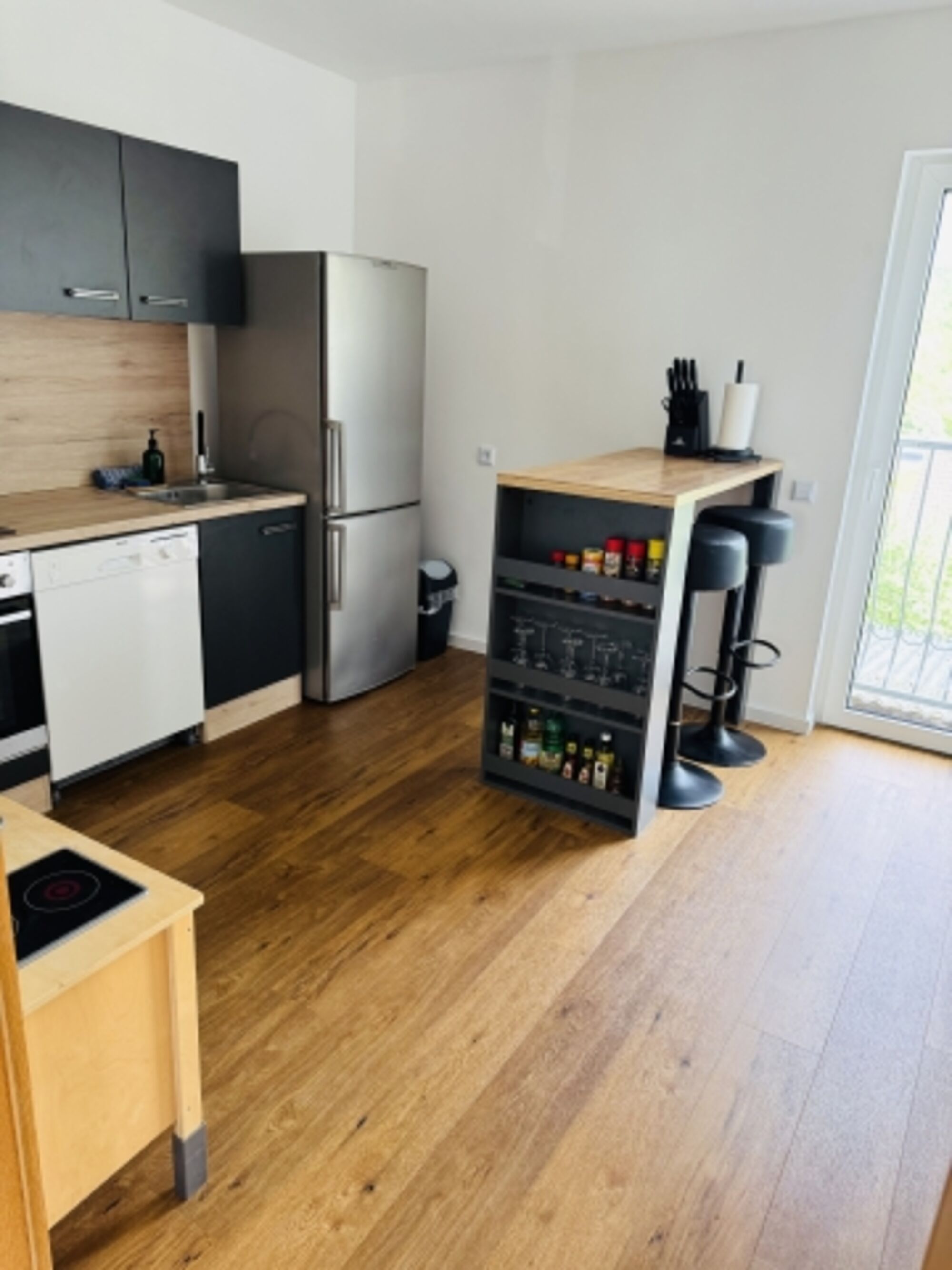 Das lichtdurchflutete Wohnzimmer mit Kamin und offener Küche lädt zum Verweilen ein und bietet eine gemütliche Atmosphäre. Die moderne Küche ist mit einem Backofen, Induktionsherd, Wasserkocher, Toaster, Kaffeevollautomat und Geschirrspülmaschine ausgestattet. Öle und Gewürze stehen Ihnen ebenfalls zur Verfügung, damit Sie Ihre kulinarischen Fähigkeiten entfalten können.