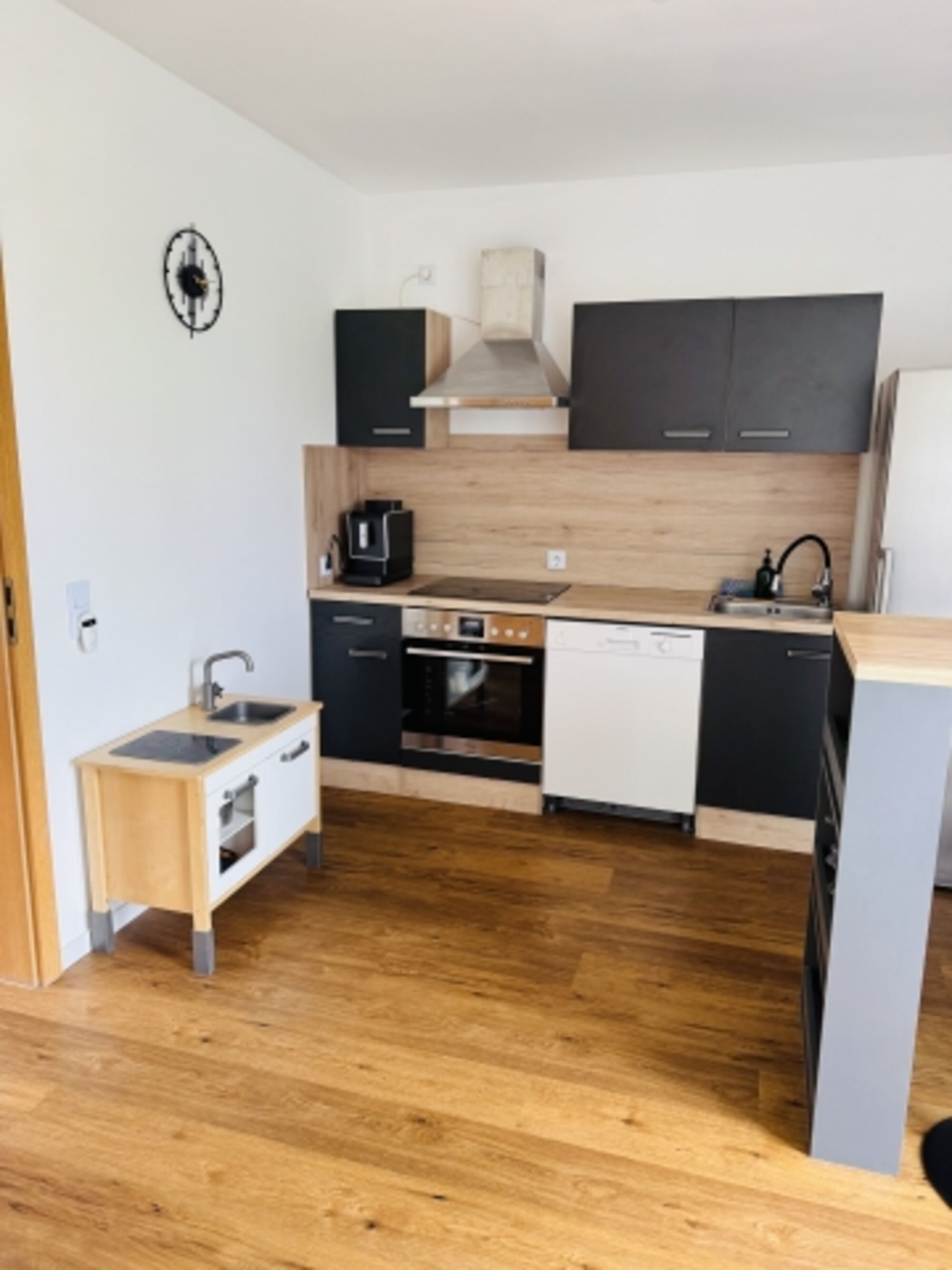 4-Platten Herd, Cerankochfeld, Induktionsherd, Dunstabzugshaube, Kühlschrank mit Gefrierfach, Gefrierschrank, Kaffeevollautomat, Mixer, Waffeleisen, Korkenzieher / Flaschenöffner, Gewürze (Salz, Pfeffer, Zucker), Öl / Essig, Geschirrhandtücher, Mülltüten, Essplatz in der Küche, TV in der Küche