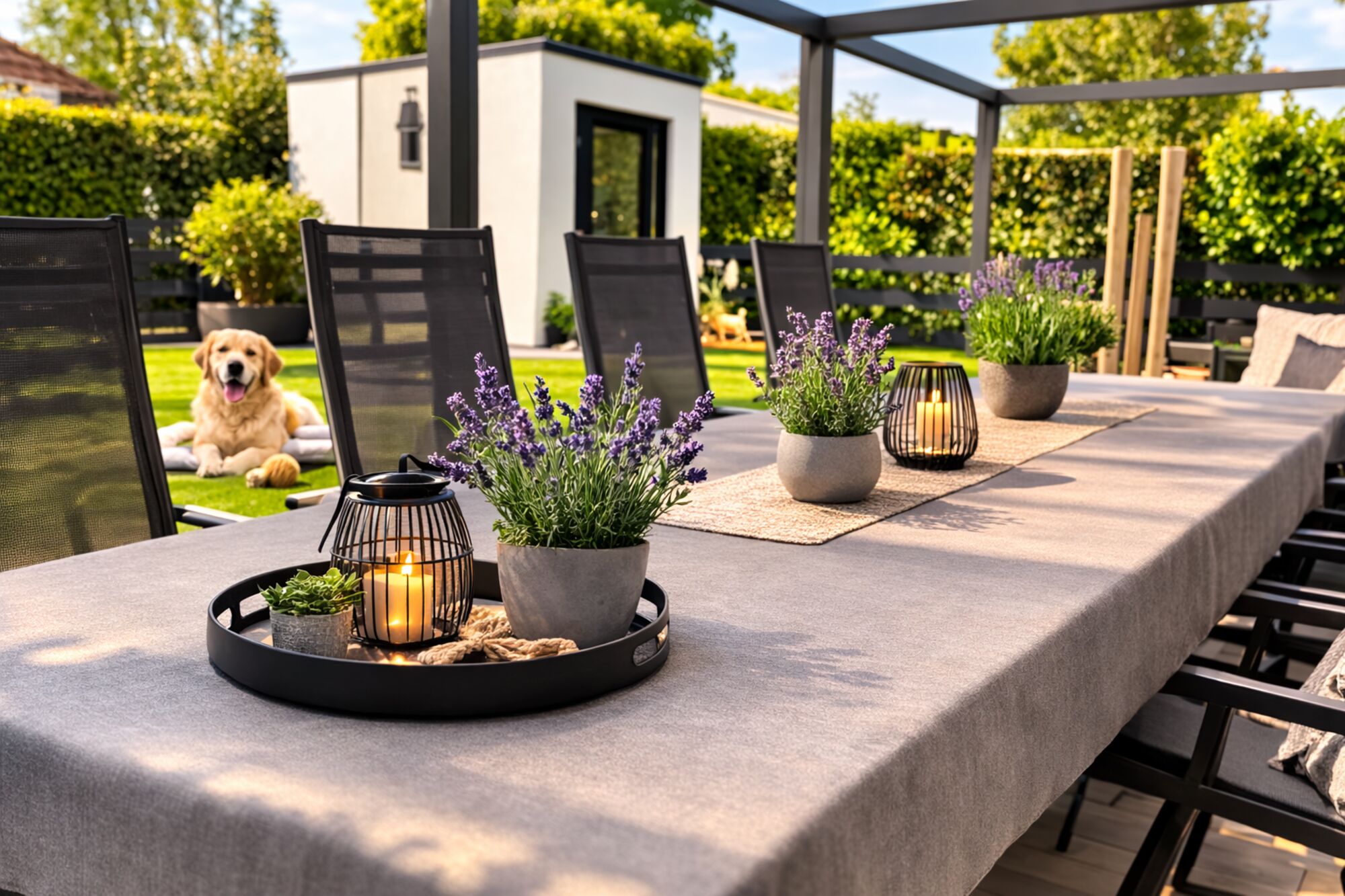 Der komplett eingezäunte Garten sorgt dafür, dass sich auch euer Hund frei und sicher bewegen kann.