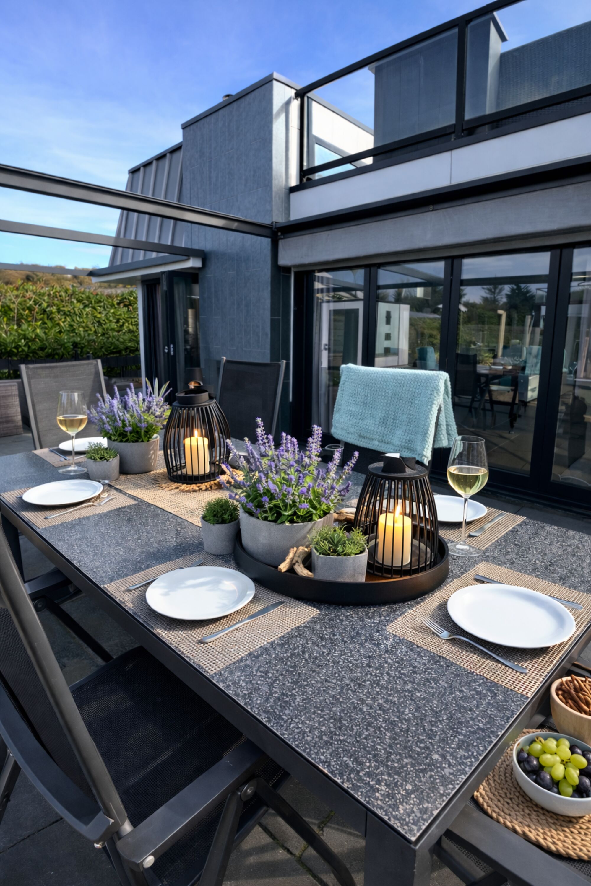 Auf der großen Sonnenterrasse mit Ess- und Loungebereich könnt ihr den Tag bei einem Glas Wein oder einer heißen Schokolade ausklingen lassen.