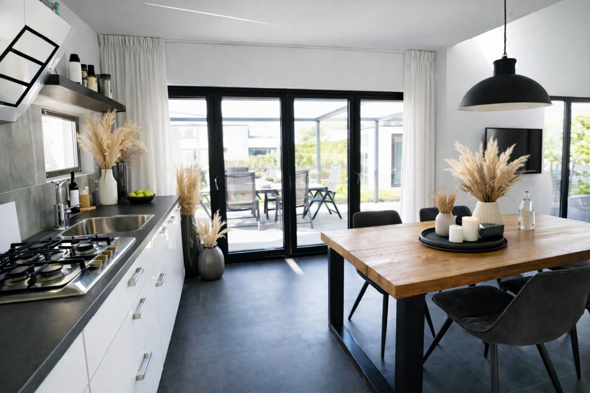 Ein hochwertiger Gasherd, Geschirrspülmaschine, separate Mikrowellen- und Backofenkombination, Kühl- und Gefrierkombination, Filterkaffeemaschine und Senseo – alles, was ihr für gemeinsame Kochmomente braucht.