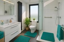 Zusätzlich gibt es ein zweites Bad mit Dusche und WC sowie ein separates Gäste-WC.
