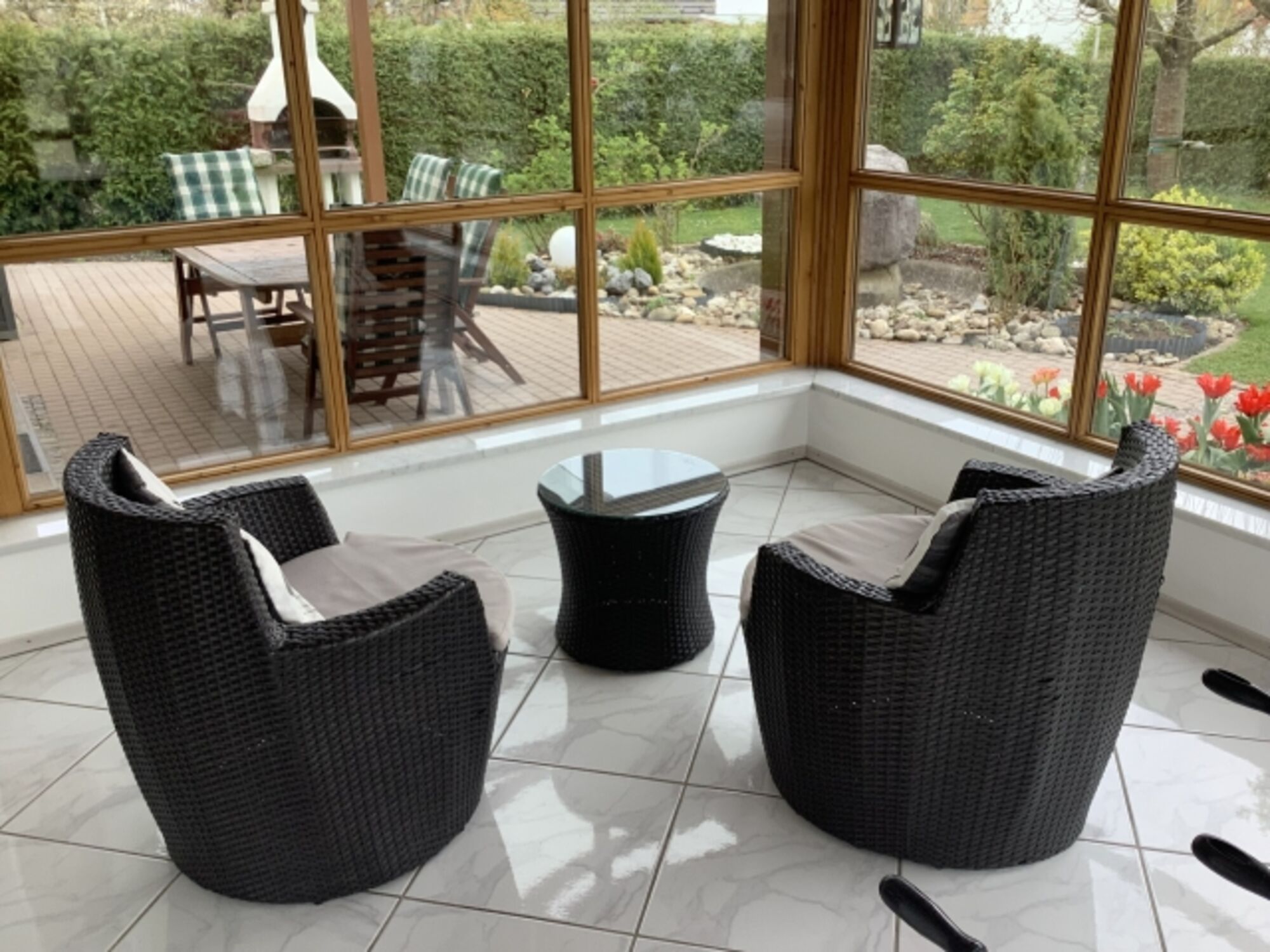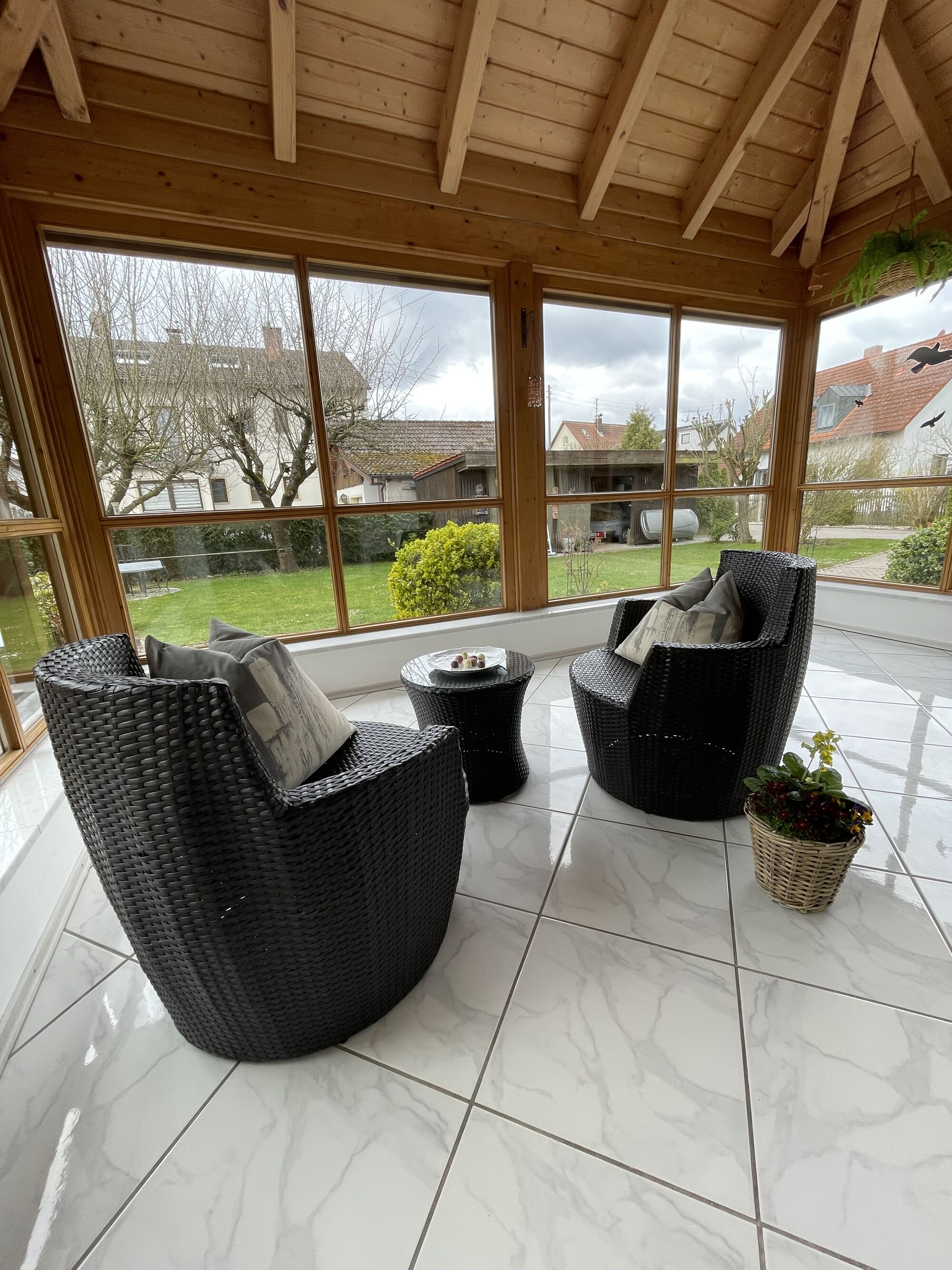 überdachte Terrasse für regnerische Tage.