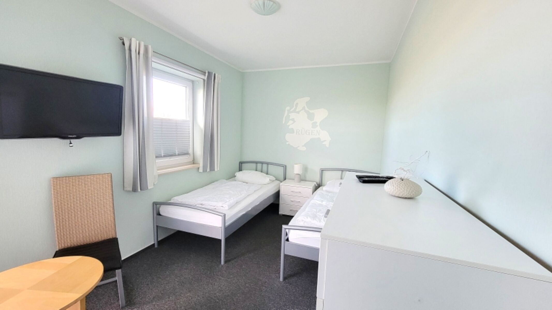 Unser charmantes Ferienhaus liegt in einer ruhigen Gegend von Breege und bietet Ihnen auf 102 m² Wohnfläche alles, was Sie für einen erholsamen Urlaub benötigen. Mit drei gemütlichen Schlafzimmern und insgesamt sechs Schlafmöglichkeiten ist ausreichend Platz für die ganze Familie.