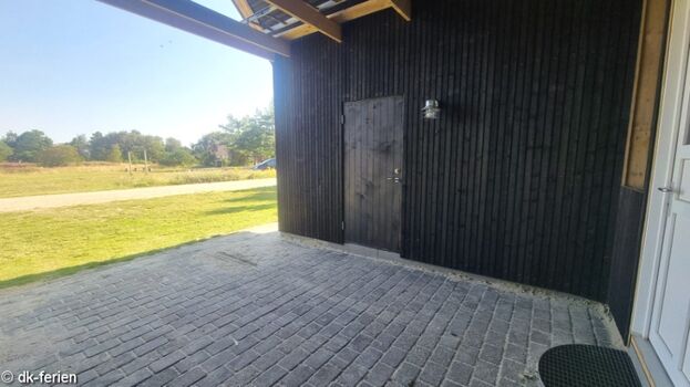 Ganz nah zum Sandstrand & doppekt eingezäunt: Terrasse und Grundstück