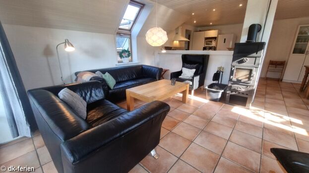 Das Innere des Hauses überzeugt mit einer modernen und gleichzeitig gemütlichen Einrichtung, die eine einladende Wohlfühlatmosphäre schafft. Der offene Wohn- und Essbereich bildet das Herzstück des Hauses und lädt mit einer komfortablen Sofaecke samt TV zum Entspannen ein. Der Esstisch bietet Platz für gesellige Spieleabende, während der Kaminofen eine angenehme Wärme verbreitet. Die integrierte, gut ausgestattete Küche macht es leicht, kulinarische Highlights zu zaubern und gemeinsam zu genießen.