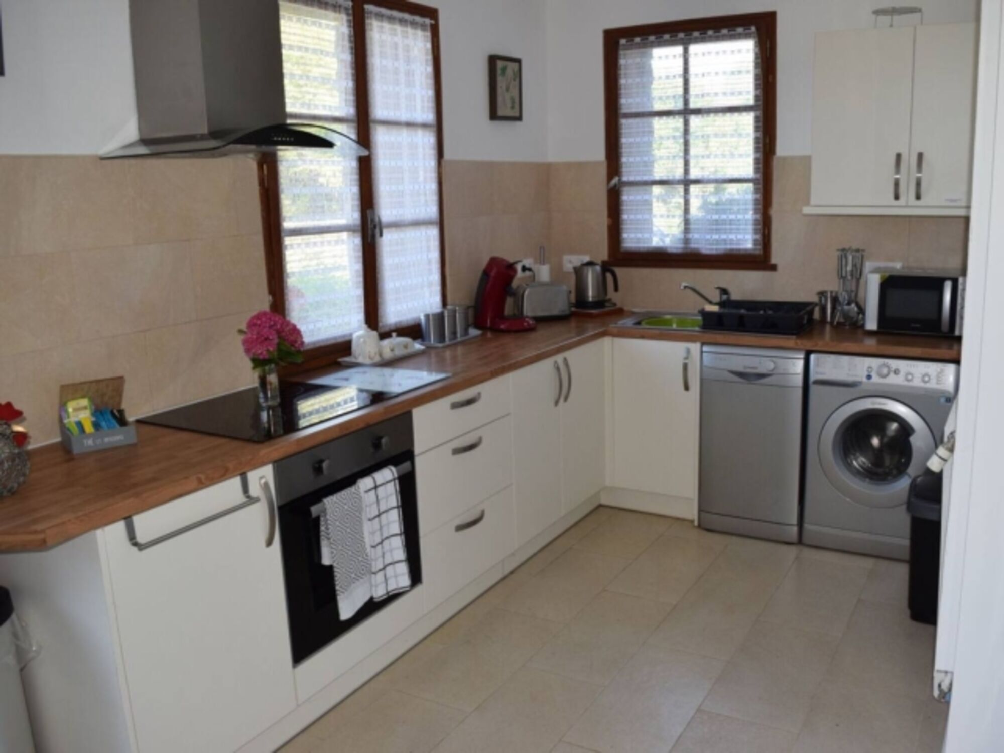 Eine große, moderne Küche ist mit Annehmlichkeiten ausgestattet, die Ihnen das Kochen und Essen zu Hause erleichtern, darunter Kaffeemaschine, Mikrowelle und Geschirrspüler. Während Ihres Aufenthalts steht Ihnen auch eine moderne, effiziente Waschmaschine zur Verfügung. Im Erdgeschoss gibt es ein Zweibettzimmer, ideal für ein zweites Paar oder Kinder, und ein neues, modernes Duschbad bietet Privatsphäre und Unabhängigkeit. Alle sind geschmackvoll dekoriert und möbliert.