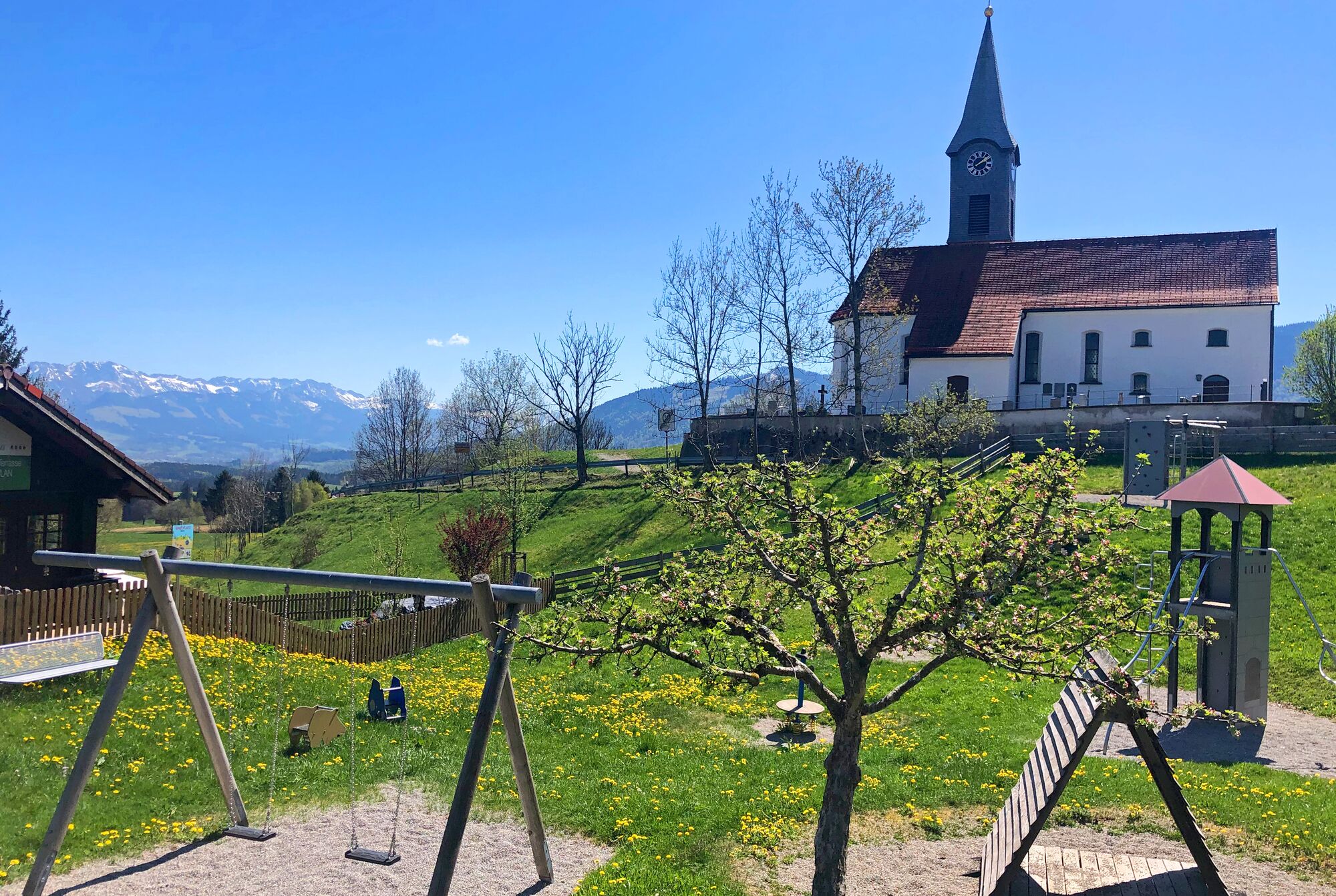 Im Ort Wirtshaus mit Allgäuer Schmankerln, Kinderspielplatz, Wanderwege direkt ab Haus,