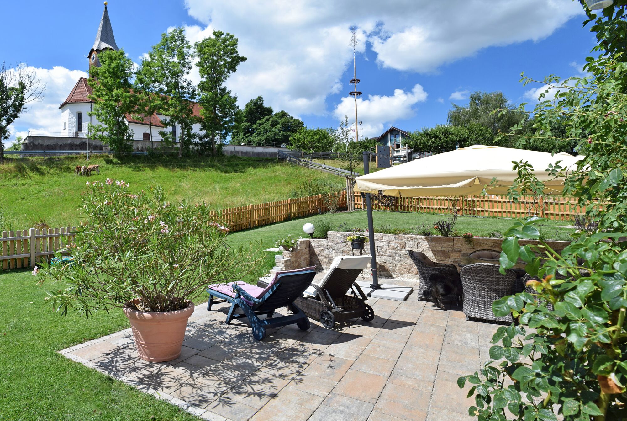 Auf Ihrem Balkon befindet sich eine gemütliche Sitzgruppe. Der große Garten mit Pool, Gartenmöbel, Grill und Liegen steht Ihnen selbstverständlich auch zur Verfügung.