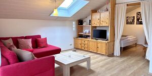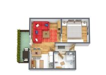 Das Wohnzimmer verfügt über eine bequeme Sitzgruppe mit einer ausziehbaren Couch, Smart-/SAT-TV, und WLAN. In der vollausgestatteten Küche befindet sich eine Küchenzeile mit Cerankochfeld und ein Esstisch mit Platz für bis zu vier Personen. Das Schlafzimmer ist mit einem Doppelbett und Schrank ausgestattet. Das Bad mit Glasdusche, Waschbecken, WC und Spiegel bietet ausreichend viel Platz.