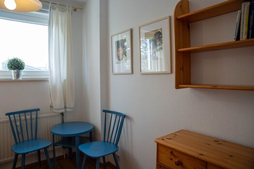 Die Ferienwohnung in Dahme bietet eine gemütliche Unterkunft auf 45 Quadratmetern. Sie verfügt über ein Etagenbett im Kinderzimmer sowie ein Schrankbett im Wohnzimmer. Die Einrichtung ist funktional, und es gibt eine Sitzecke für bis zu vier Personen, perfekt für gemeinsame Mahlzeiten oder entspannte Abende. Die Wohnung befindet sich im ersten Stock und hat einen Balkon mit Sitzmöbeln, wo Sie die frische Luft genießen können. Zudem ist auch ein Hund herzlich willkommen.